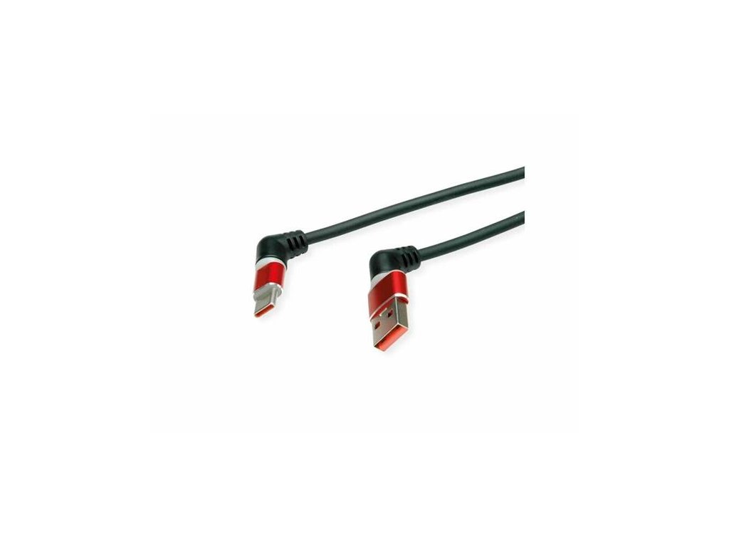 Kábel USB 2.0 AM/CM Typ C 1m, High Speed, čierny/červený, uhľový 90°, otočné konektory 11028345