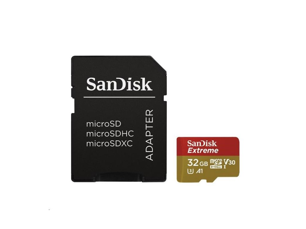 Karta SanDisk MicroSDHC 32 GB Extreme (100 MB/s, Class 10 UHS-I V30, pre akčné kamery) + adaptér SDSQXAF-032G-GN6AA