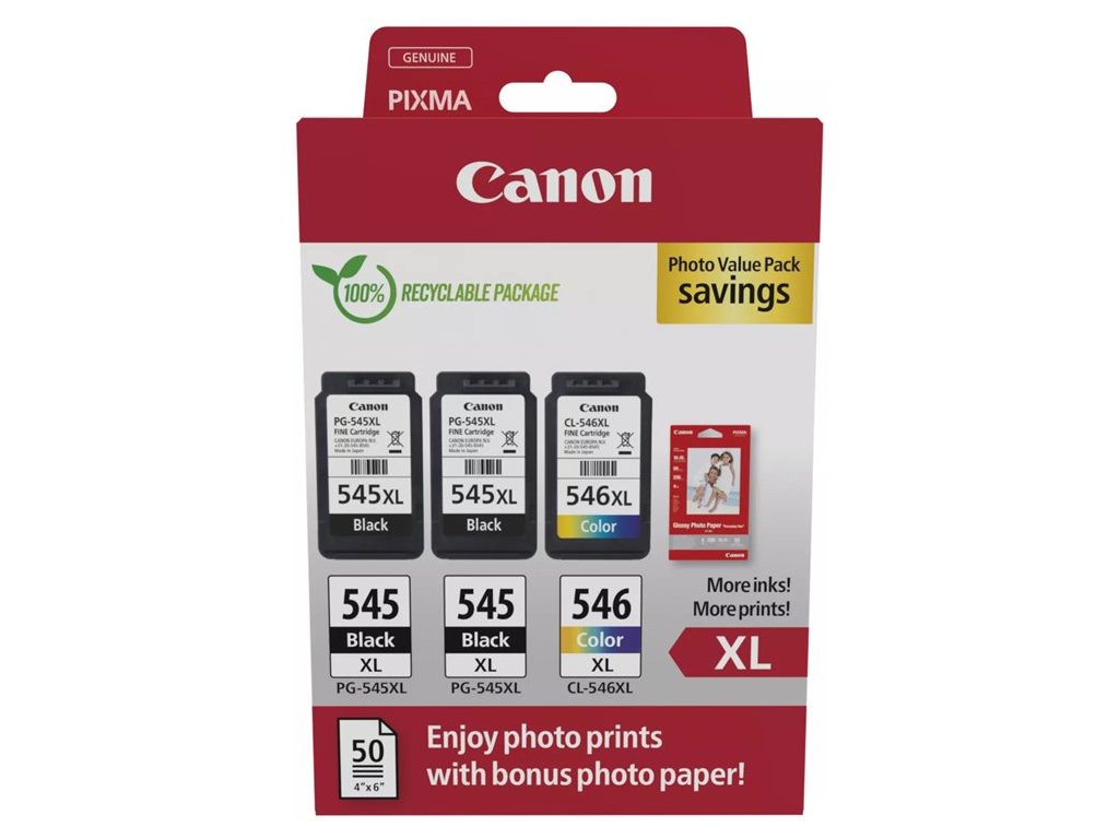 multipack CANON PG-545 XL 2x + CL-546 XL + GP501 10x15 pre zariadenia:CANON PIXMA MG2450, MG2550,