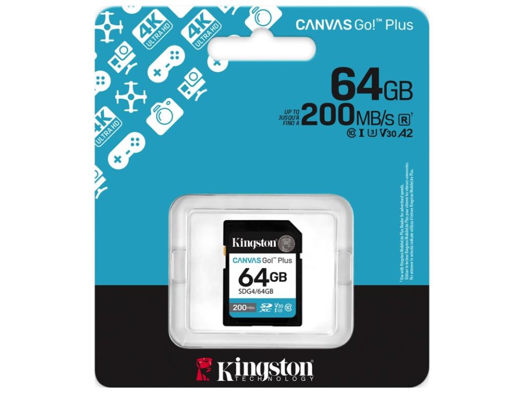 Pamäťová karta Canvas Go! Plus SD od spoločnosti Kingston je navrhnutá pre všetkých dobrodruhov, ktorí nechcú zmeškať ani jediný okamih. Ponúka ohromujúcu rýchlosť čítania až 200 MB/s a zápisu až 100 MB/s, vďaka čomu je ideálna na plynulé nahrávanie videa v rozlíšení 4K UHD a na snímanie fotografií v sekvenčnom režime (burst-mode).