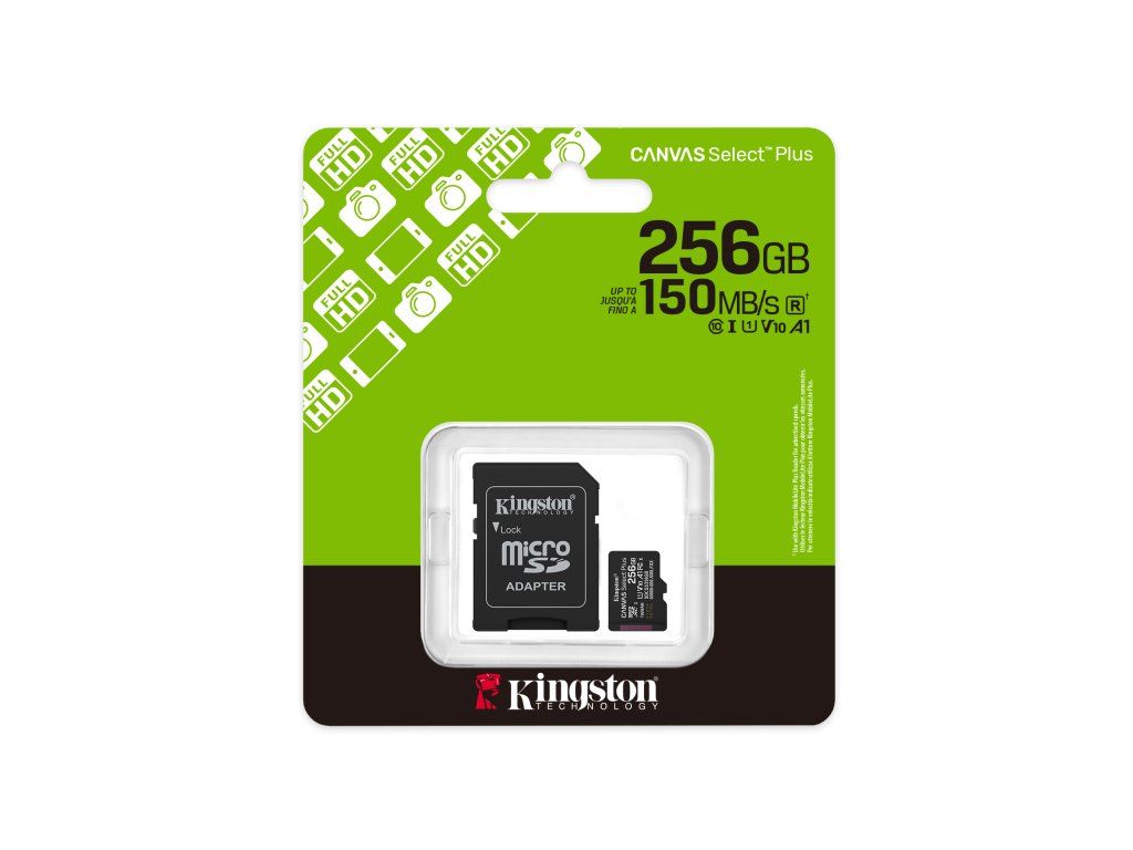 Karta microSD Canvas Select Plus od společnosti Kingston nabízí spolehlivý výkon, je kompatibilní se zařízeními se systémem Android a fotoaparáty a dosahuje rychlosti až 150 MB/s. Díky výkonu aplikací A1 zajišťuje plynulý multitasking a rychlé načítání. Je odolná a všestranná, takže je ideální pro každodenní potřeby úložiště. Paměťová karta microSD Canvas Select Plus od společnosti Kingston je kompatibilní se zařízeními se systémem Android a je navržena se zvýšeným výkonem na úrovni A1. Nabízí spolehlivou rychlost a velkou kapacitu pro rychlejší načítání aplikací a pořizování snímků a videí v kapacitě až 1 TB. Karta Canvas Select Plus microSD s vysokým výkonem, rychlostí a odolností je navržena tak, aby byla spolehlivá, takže si ji můžete vzít kamkoli s jistotou, že vaše fotografie, videa a soubory budou chráněny. * UHS-I rychlostní třída, U1, V10, A1 * Čtení až 150MB/s * Velikost karty:11mm x 15mm x 1mm * Velikost adapteru:24mm x 32mm x 2.1mm * Formát: exFAT * Operační teplota: -25°C~85°C * Skladovací teplota: -40°C~85°C * Voltáž: 3,3VDodatočné parametre