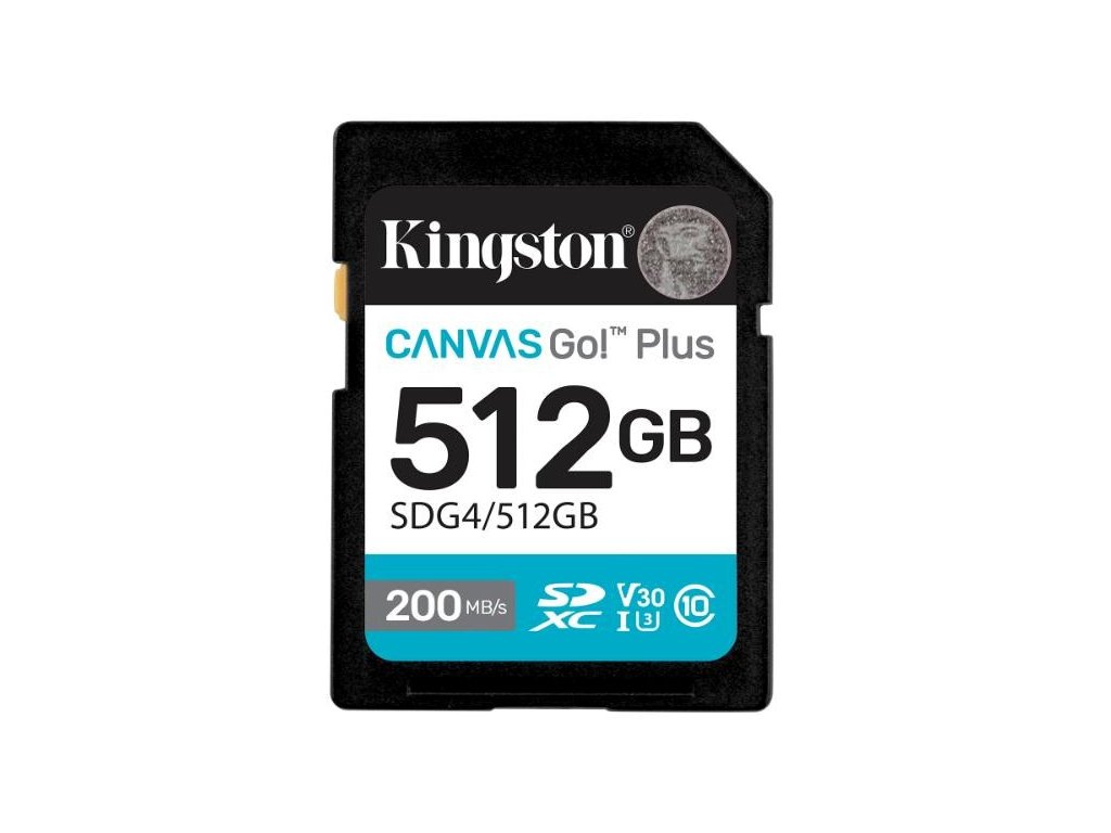 Kingston SDXC karta 512GB Canvas Go! Plus, R:200/W:160MB/s, Class 10, UHS-I, U3, V30 SDG4/512GB