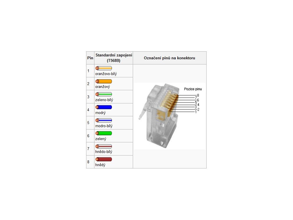 Konektor RJ45 nestíněný UTP CAT6 krimpovací pro kulaté kabely, balení 10ks - RJ45 8P8C 8 pinů - Nestíněný konektor + vložka - Vhodné na lanko a drát Cat6 - 2 x prong - Prodejní balení 1 ks (větší balení po 100ks) - Material kontaktů: Phosphor bronze - Povrchová úprava kontaktů: Nickel, pozlacené kontakty 15 µ - Materiál konektoru: Polykarbonát, barva transparentní - Vhodné pro vodiče průměrů AWG (27/7 ... 24/7) - Teplotní rozsah: -40°C ... +70°C Konektor má malou plastovou vložku s otvory na vodiče. Do vložky se nasunou jednotlivé vodiče a potom se vložka s vodiči nasune do těla konektoru a zakrimpuje kleštěmi.Dodatočné parametre