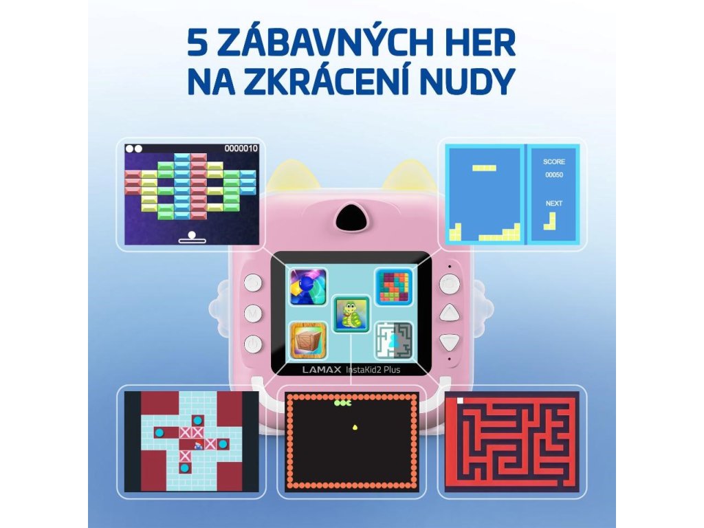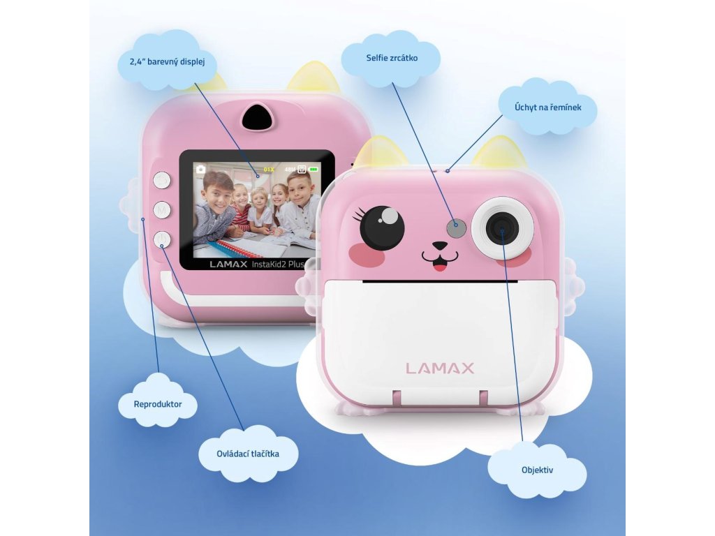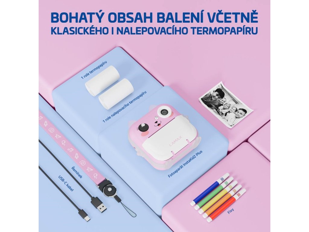 Objavte kúzlo zachytených momentov, ktoré si vaše deti vytlačia počas pár sekúnd. Detský fotoaparát LAMAX InstaKid2 Plus s okamžitým tlačom nie je len roztomilý na pohľad. S českou aplikáciou, vysokým rozlíšením fotiek aj videa a sadou kreatívnych nástrojov sa stáva zábavným parťákom na výlety i do izbičky. Deti si s ním nielen vyfotí svoje zážitky, ale hneď si ich aj vytlačia, vymaľujú priloženými fixkami a nalepia do denníka alebo kamkoľvek budú chcieť. Pomocou aplikácie potom zvládnu tlačiť fotky a poznámky z telefónu, skenovať texty zo zošitov, prekladať snímky do animovaného štýlu alebo si s pomocou AI vymaľovať čiernobiele obrázky. A keď si od fotenia chcú na chvíľu oddýchnuť? O zábavu sa postarajú aj vestavné hry.LAMAX InstaKid2 Plus fotoaparát podporuje kreativitu, samostatnosť i hravé učenie a kto vie, možno práve tento foťák odštartuje kariéru vášho dieťaťa vo svete fotografií a filmu.
