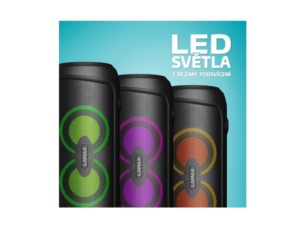 Celá predná strana reproduktora disponuje tromi režimami LED podsvietenia, jednoducho ideálny parťák na párty.
