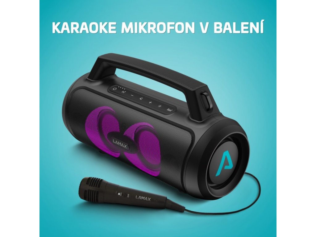 Až to na párty rozbehneš s LAMAX PartyGo1, nikto na ňu nezabudne. Okrem parádneho zvuku si ju pokojne môžeš odmoderovať alebo rozprúdiť zábavu organizácií karaoke. Ide to ľahko, pribalili sme ti totiž mikrofón. A aby toho nebolo málo, máš k dispozícii 3 režimy LED podsvietenia na celom prednom paneli. Reprak sa ti automaticky spáruje so zariadením a moderný Bluetooth 5.3 dáva možnosť perfektného prenosu až na vzdialenosť 18 m. Hudbu si pohodlne pustíš ale aj cez USB, microSD kartu alebo káblom.
