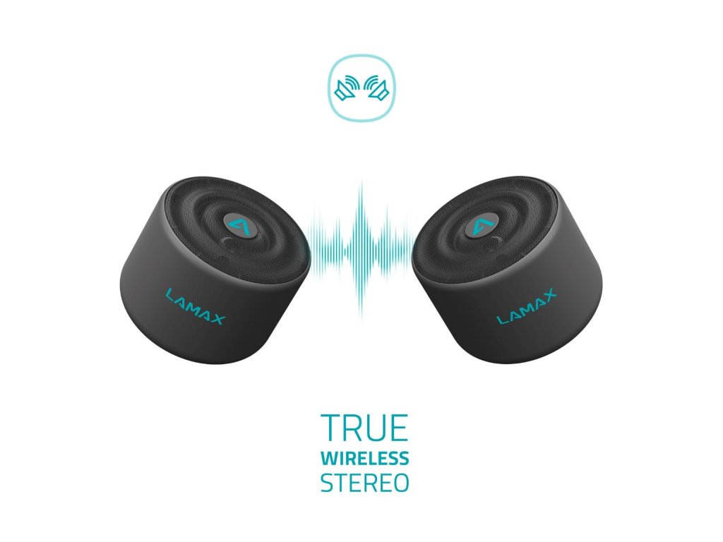 Vezmi ešte jeden LAMAX Sphere2 a pomocou funkcie TWS si sprav poriadnu stereo sústavu. Výkon sa ti znásobí a bez oneskorenia môžeš hrať hneď z dvoch reproduktorov.