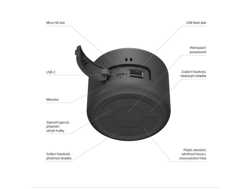 Okrem Bluetooth môžeš využiť aj MicroSD kartu alebo USB flashku. Z reproduktoru sa potom stane samostatný prehrávač, ktorý tvoj telefón ani nepotrebuje.