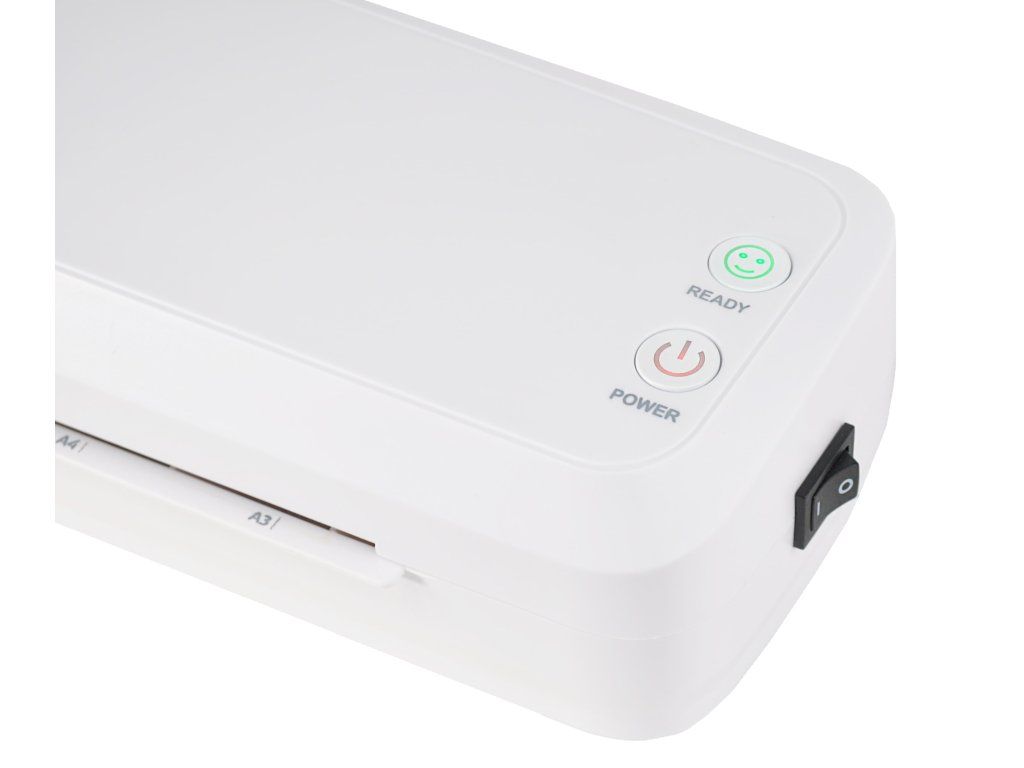 - Laminátor A3 pro domácí i kancelářské použití - Velikost laminovací fólie: A3, A4, A5, A6, A7 - Tloušťka laminovací fólie 2x75 - 2x125 mic - Šířka vstupního otvoru 338 mm - Rychlost laminace 300 mm/min - Doba nahřátí 1 min - Automatické vypnutí po 30 minutách - Způsob laminování za tepla - Uvolňovací páčka pro vyjmutí dokumentu při zaseknutí - Rozměr: 460 x 110 x 73 mmDodatočné parametre