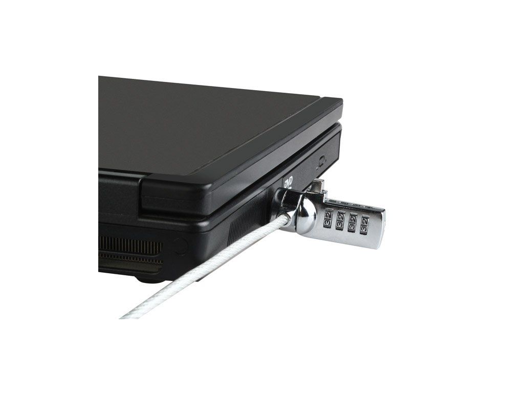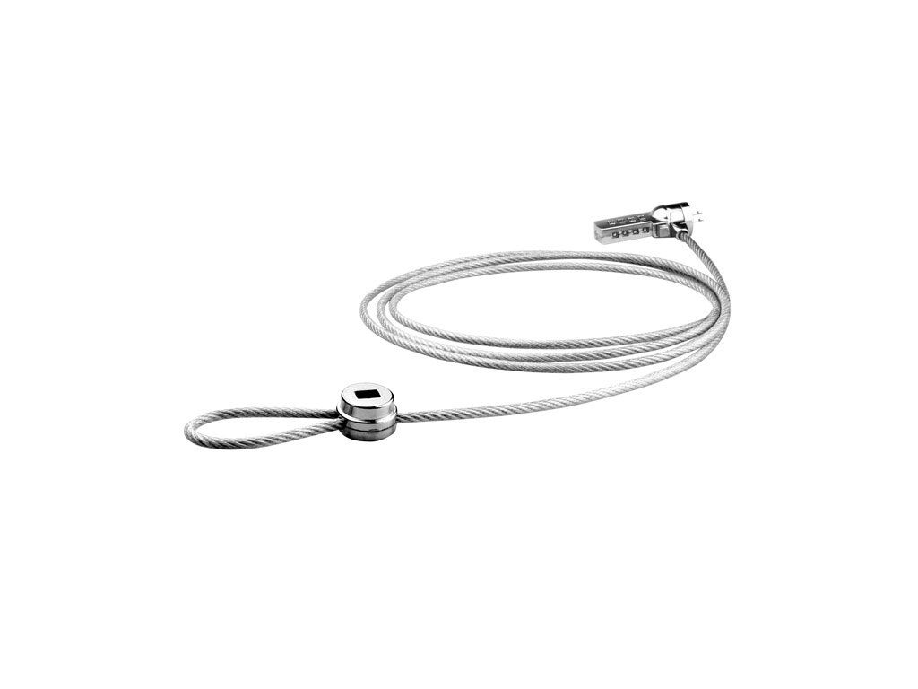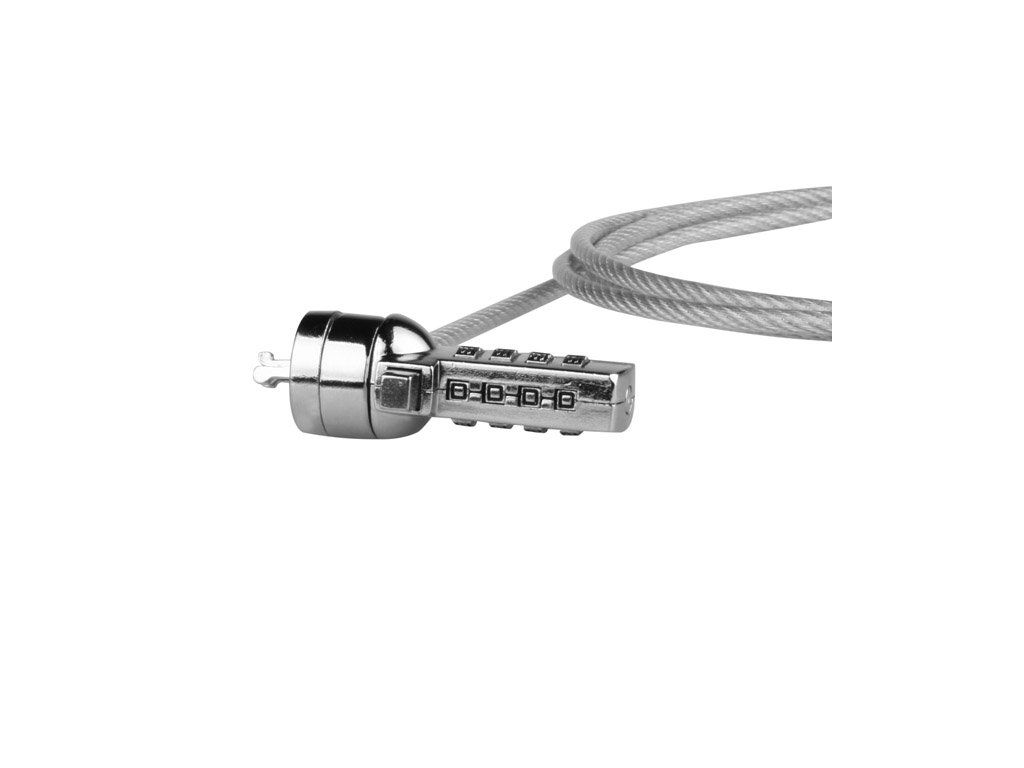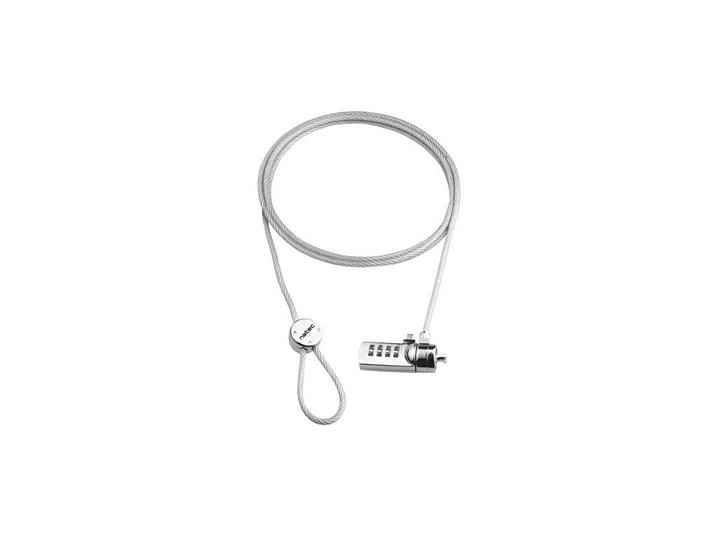 Lankový bezpečnostní zámek na kód pro notebooky vyrobený z tvrzené oceli, pokrytý gumovou vrstvou, vhodný pro montáž v bezpečnostních slotech notebooků a jiných zařízení např. trezorech, který zvyšuje bezpečnost vašeho zařízení a poskytuje ochranu před odcizením. Zámek je vybaven praktickým čtyřčíslím kódem s možností nastavení 10 000 různých kombinací. Typ zámku: Na kód Barva: Stříbrná Délka kabelu: 1,8m Materiál: ocel, PVCDodatočné parametre