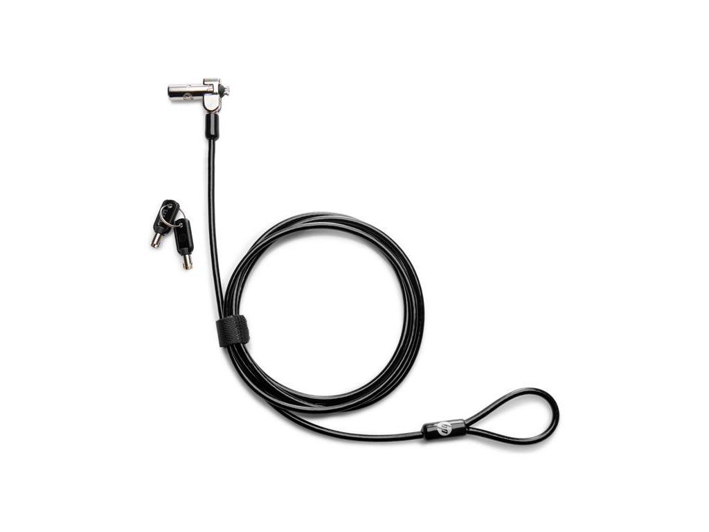 Lankový nano zámok HPObtočte oceľový kábel okolo ľubovoľného bezpečného objektu, pripojte ho k prenosnému počítaču alebo tabletu, vložte kľúč do zámku a otočte ho o 90 stupňov v smere hodinových ručičiek.