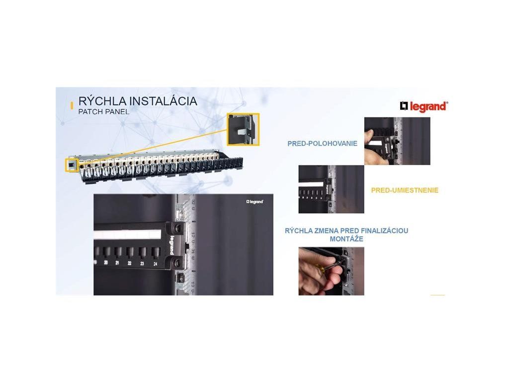 Legrand LINKEO-C 19" modulárny patch panel 24port 1U pre UTP i STP keystony, vyväzovacia lišta kov, čierny 632850
