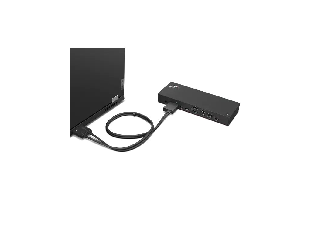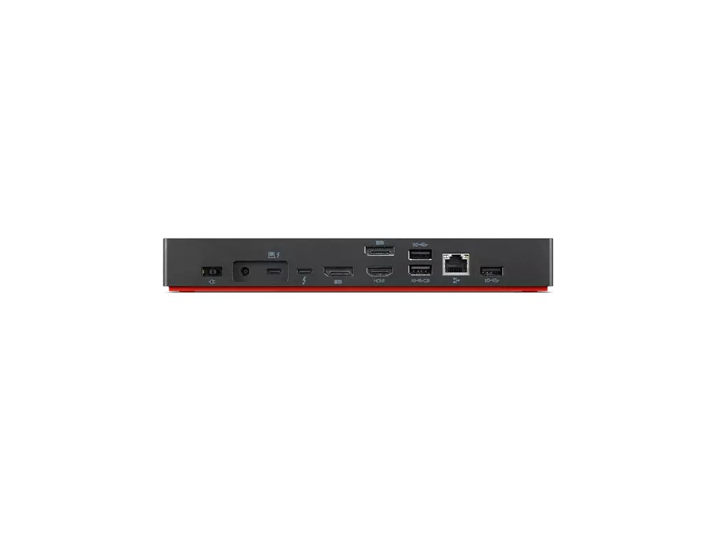 Popis produktu: Premium Thunderbolt™ 4 Docking Experience: ThinkPad Thunderbolt 4 Workstation Dock delivers reliable and consistent industry leading video, data and power connectivity; Maximize Your Productivity: Expand your horizon with versatile 8K display support or multiple 4K displays support, Upto 230W Power Delivery to Workstation, silent firmware upgrades, VPro/AMT support and transfer data at lightning fast 40Gbps.; The ThinkPad Thunderbolt 4 Workstation Dock is future-proof and fully loaded to take your productivity, efficiency and creativity to the peak. Top Features The ThinkPad Thunderbolt™ 4 Workstation Dock supports upto 230W PD; Single 8K@30Hz or upto 4 4K@60HZ display support; Silent firmware upgrades, vPro/AMT Pass through support, and; Data transfer rates upto 40 Gbps; (depending on host system and peripheral processing capability, file attributes, and other configuration and operating environment factors) Thunderbolt Port: 1* Thunderbolt Port - for Host connect 1* Thunderbolt Port - for Device connect Video Ports: 1* HDMI 2.1 2* DP 1.4 USB Ports: 4* USB-A 1* USB-C Audio Ports: 1* 3.5mm Audio combo Jack Ethernet: 1* Gigabit Ethernet Physical Security Feature: 1* NanoSaver lock slot 1*MicroSaver lock slot Max Number of External Monitors: 4 Length: 220mm Depth: 80mm Height: 30mm Product Weight: 0.45Kg Included Accessory: 300W adapter, 1x power cord, standard Thunderbolt cable Supported Operating System Microsoft Windows 10 64-bit Shipment Group ThinkPad Universal TBT 4 Dock; 300W AC Power adapter; Power cord; Setup poster&Warranty Poster Thunderbolt+Power Combo cable Maximum Resolution Support/Refresh Rate 1* 8K 30Hz Via HDMI 2.1 4*4K 60 Hz WARRANTY TERMS 3 YearsDodatočné parametre