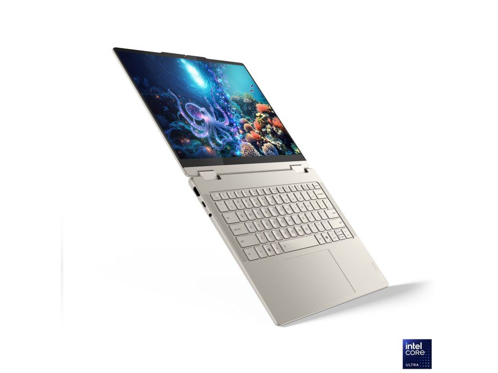 Lenovo Yoga 7 2v1 14ILL10 Copilot+ PC * armádní standard MIL-STD-810H * Lenovo® AI Now * Intel® Evo™ * Lenovo® YOGA True Wireless stereo sluchátka * Yoga® Slim Mouse * Lenovo YOGA 14'' obal/sleeve (Luna Grey) Operační systém: Windows® 11 Home Procesor: Intel Core Ultra 7 258V (8 jader - 4P + 4LPE, 8 vláken, P-core 2,2/4,8 GHz, LPE-core 2,2/3,7 GHz, 12 MB cache) NPU: integrovaný Intel® AI Boost, až 47 TOPS Paměť: 32GB integrovaná LPDDR5x-8533 Počet slotů (celkem/volných): bez slotů (0/0) Maximální velikost: 32GB, nelze navýšit Pevný disk: 1TB SSD M.2 2242 PCIe® 4.0x4 NVMe® Sloty pevného disku: 1x M.2 SSD Optická mechanika: ne Čtečka paměťových karet: microSD Displej: dotykový 14'' 2,8K WQXGA+ (2880x1800) OLED, 500 nitů, lesklý/ochrana proti otiskům prstů, 100% DCI-P3, 120 Hz, Dolby Vision®, TÜV Low Blue Light, DisplayHDR0, sklo Grafická karta: Intel Arc 140V Audio: 4 stereo reproduktory, 2x 2W (woofery), 2x 2W (výškové reproduktory), optimalizované s Dolby Atmos®, Smart Amplifier (AMP), kodek Realtek® ALC3306, HD, 4x mikrofon Webkamera: 5MP + IR se závěrkou Polohovací zařízení: beztlačítkový vícedotykový touchpad s povrchem Mylar®, podpora Precision TouchPad (PTP), 75x120mm Podsvícená klávesnice: ano Numerická klávesnice: ne Čtečka otisků prstu: ne Pero: Lenovo® Yoga® Síť: ne Bezdrátová komunikace: WLAN + Bluetooth (Wi-Fi® 7, 802.11be 2x2 + BT5.4) Porty USB: * 1x USB-A (USB 5Gb/s/USB 3.2 Gen 1), Always On * 2x USB-C® (Thunderbolt™ 4/USB4® 40Gb/s), s USB PD 3.0 a DisplayPort™ 2.1 Další porty: * 1x kombinovaný konektor pro sluchátka/mikrofon (3,5mm) * 1x HDMI® 1.4b * 1x čtečka microSD karet Bezpečnostní čip: firmware TPM 2.0 Baterie: integrovaná 70Wh Li-Pol Výdrž baterie: 13,5h (MobileMark® 30@250 nitů) Napájení: 65W, USB-C® (3pin) Barva: Seashell Materiál: hliník + recyklovaný hliník + silikonová veganská kůže Rozměry: 317x228x15,95mm Hmotnost: cca 1,38kg Záruka: 3 roky Onsite Odkaz na stránku výrobce: https://psref.lenovo.com/Detail/Yoga_7_2_in_1_14ILL10?M=83JQ0040CKDodatočné parametre
