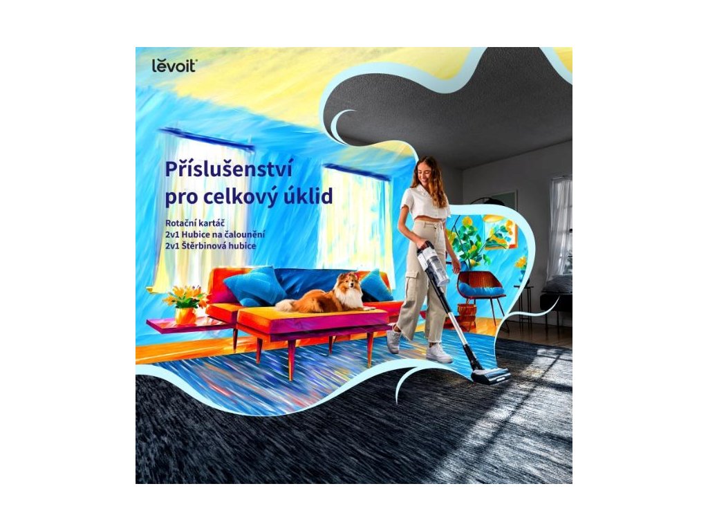 Tyčový vysavač Levoit je navržený, aby maximálně usnadnil úklid vašeho domova, ať už ho sdílíte se čtyřnohým, nebo dvounohým miláčkem. Vysavač je vybaven rotačním kartáčem s kombinací gumových a textilních lamel, který byl navržen tak, aby na něm nedocházelo ke hromadění namotaných vlasů nebo chlupů. Zároveň je ale kartáč efektivní a zachytává maximální množství nečistot. Vysavač pracuje s 22,2V vyjímatelným akumulátorem s kapacitou 2200 mAh a indikací nabití. Motor je s výkonem 180 W nezvykle tichý, při běžném provozu vydává 74 dB, v Turbo režimu pak 81 dB. Vysavač s plně nabitou baterií dokáže pracovat až 50 minut, což umožní úklid celého obydlí na jedno nabití. Úklid s LVAC 200 je radost díky jeho velmi nízké hmotnosti 1,45 kg. Díky tomu je snadné s vysavačem odstranit i pavučiny ze stropu, prach ze žaluzií nebo nečistoty pod nábytkem. V balení naleznete dlouhou a krátkou násadu, rotační kartáč, 2v1 kartáč na čalounění nebo zvířecí srst a 2v1 štěrbinový nástavec s kartáčem. Tím máte perfektní sadu nástrojů pro kompletní úklid. Levoit LVAC si hravě poradí se všemi povrchy, ať už jsou to koberce, tvrdé podlahy nebo čalounění. Kartáčový nástavec je navíc vybavený LED světlem, takže umožní práci v tmavých zákoutích, a navíc osvětluje přítomné nečistoty. Vysavač v sobě skrývá 5násobný filtrační systém, který odstraňuje částice od velikosti 0,3 mikrometrů. Nečistoty se shromažďují v 0,75L nádobě s mechanizmem pro snadné a hygienické vyprazdňování. Filtry i kartáč jsou jednoduše vyjímatelné a omyvatelné.