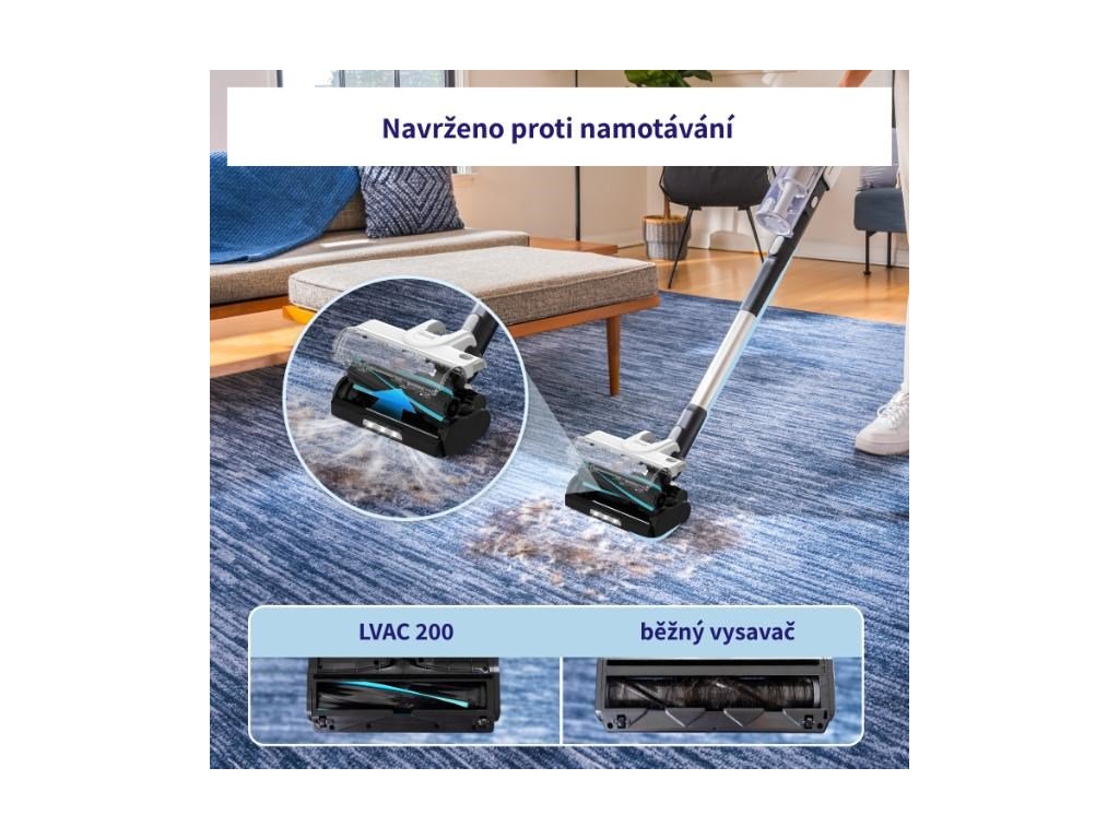 Rotační kartáč byl navržen abyste nemuseli neustále odmotávat vlasy a chlupy. Zároveň ale jeho textilní a gumové lamely fungují perfektně pro jejich odstranění. Vestavěný hřeben vlasy i srst od kartáče separuje do odpadní nádoby a udržuje ho tak čistý. LVAC 200 je ideálním nástrojem do domácnosti se zvířaty.