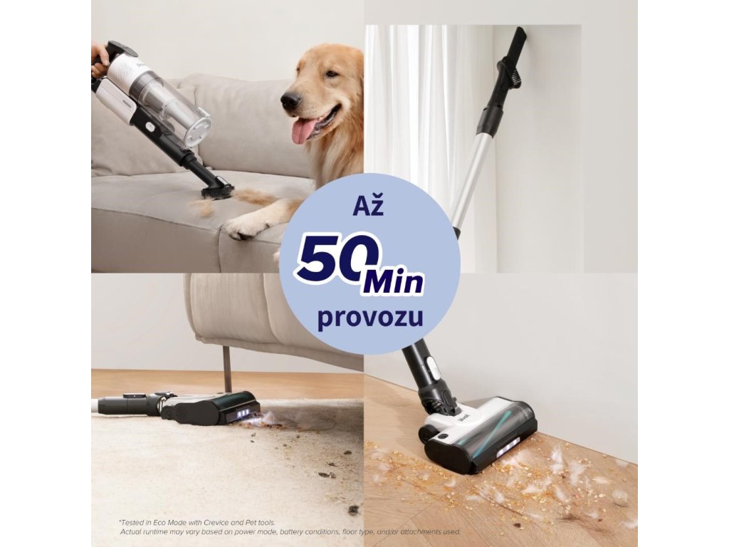 Vysavač je vybavený 180 W bezkartáčovým motorem, který pohání 2200 mAh baterie. Díky kombinaci moderního motoru a velké baterie je vysavač je tak nejen tichý, ale hlavně vydrží pracovat opravdu dlouho. Při běžném úklidu vydrží vysávat až 50 minut, a to stačí na úklid celého prostoru. Motor má 100.000 otáček a poradí si tak i s těžšími nečistotami jako je písek a jiný venkovní materiál.