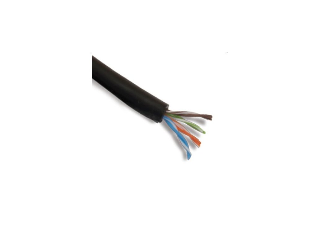 Kabel UTP venkovní dvouplášťový 4 páry PVC+PE černý CAT 5e drát 24AWG čistá měď. Měrky po metrech, balení na dřevěných cívkách po 305m. Vodiče o průřezu 24AWG, robustní černý plášť z LDPE odolávající UV záření a venkovním povětrnostním vlivům.Dodatočné parametre