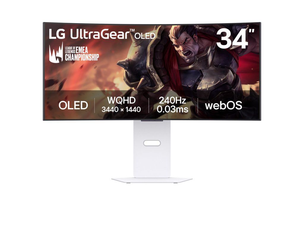34'' zakřivený chytrý herní monitor LG UltraGear™ OLED 240Hz WQHD | webOS, 0.03ms (GtG), 240Hz, DisplayHDR True Black 400 * 34'' OLED displej s rozlišením WQHD (3440 x 1440) *Obnovovací frekvence 240Hz / doba odezvy 0.03ms (GtG) *webOS *AI Picture / Dynamické mapování tónů / AI Personalized Picture Wizard / AI Sound *NVIDIA® G-SYNC® Compatible / AMD FreeSync™ Premium / VESA Certified AdaptiveSync *Šestihranný design osvětlení s prostorově úsporným L stojanem Typ obrazovky: OLED Úhlopříčka [palce]: 34 Rozlišení: 3440 x 1440 Rozteč bodu [mm]: 0,231 x 0,231 mm Obnovovací frekvence [Hz]: 240 Poměr stran: 21:9 Povrch displeje: Anti-Glare, Nízká reflexe předního polarizátoru Jas [cd/m2]: 275 cd/m2 Kontrast: 1500000:1 Odezva [ms]: Méně než 1 ms GtG Pozorovací úhly (Horizontál/Vertikál): 178/ 178 Počet barev: 1.07B Reproduktory: 7 W x 2 Konektory: *DisplayPort 1.4 (DSC) x 1 *HDMI x 2 *USB-C x 1 (data, video až 3440 x 1440 @ 240 Hz, napájení 65 W) *USB Downstream USB 2.0 x 2 *USB Upstream via USB-C x 1 *Výstup pro sluchátka 3-pólový (pouze zvuk) *LAN (RJ-45) x 1 Napájení: Externí napájení (adaptér) Spotřeba [W]: 39 kWh / 1000 h HDR Stand By režim [W]: Méně než 0.5 W Třída energetické náročnosti: G Ergonomie: Náklon / výška / otáčení Barva: Černá/ bílá Rozměry (se stojanem, ŠxVxH mm): 784,1 x 580,4 x 291,8 / 784,1 x 470,4 x 291,8 Rozměry (bez stojanu, ŠxVxH mm): 784,1 x 358,3 x 167,1 Hmotnost [kg]: 6,2 hmotnost bez stojanu [kg] Obsah balení: Adaptér, napájecí kabel, USB-C kabel, HDMI kabel (bílá / 1,5 m), dálkový ovladač, kalibrační protokol, zobrazovací port Záruka: 24 měs.Dodatočné parametre