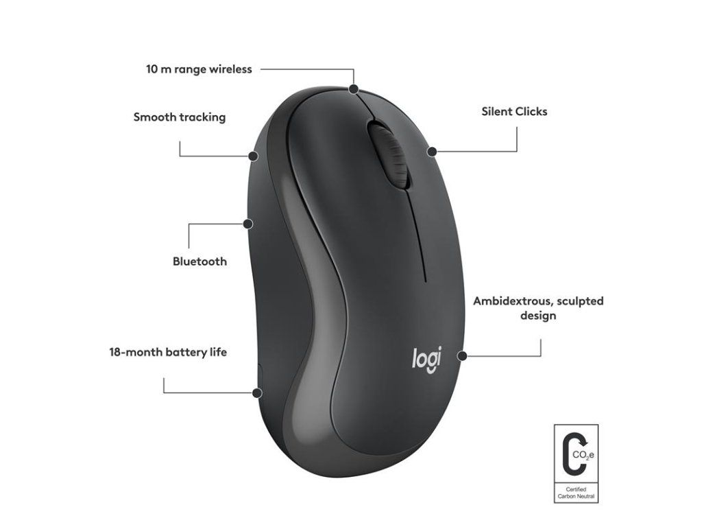 Spoľahlivá myš Bluetooth® s pohodlným tvarom a tichým klikaním. TICHÝ, POHODLNÝ A JEDNODUCHÝ Zoznámte sa s myšou M240 Silent, spoľahlivou Bluetooth® myšou, ktorá uvoľní váš pracovný priestor, pripojí sa za niekoľko sekúnd a zabezpečí mimoriadne tichú produktivitu, ktorá vydrží. Vďaka tvarovaniu a 18-mesačnej výdrži batérie sa môžete sústrediť na to, čo vám ide najlepšie.Dodatočné parametre