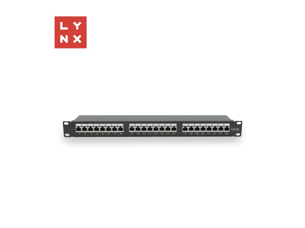 LYNX 19" patch panel 24-port, STP Cat6a, 50µ, stíněný, černý
