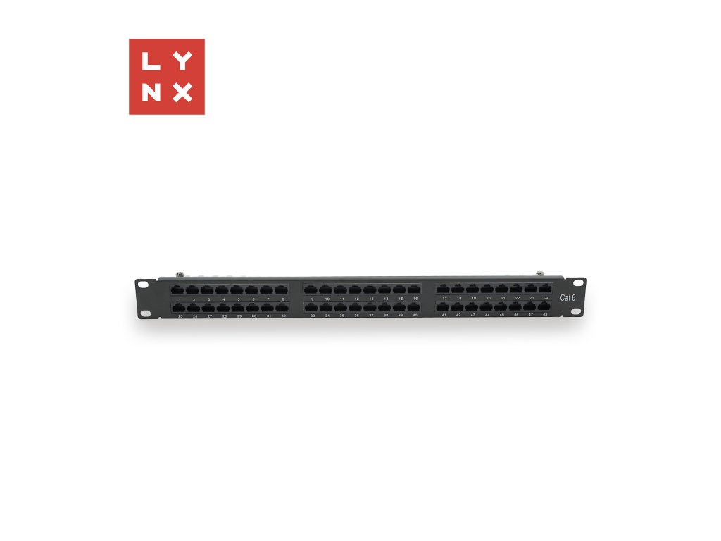 LYNX 19" patch panel 48-port, UTP Cat6, 50µ, nestíněný, černý