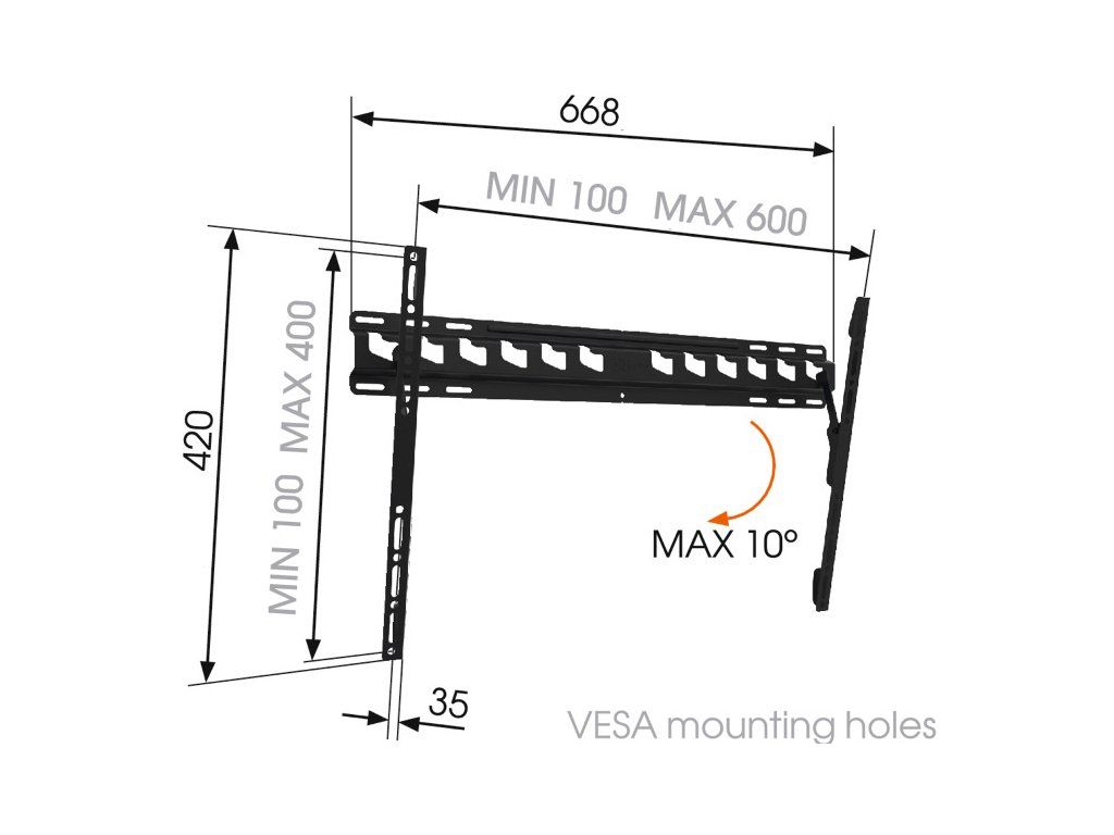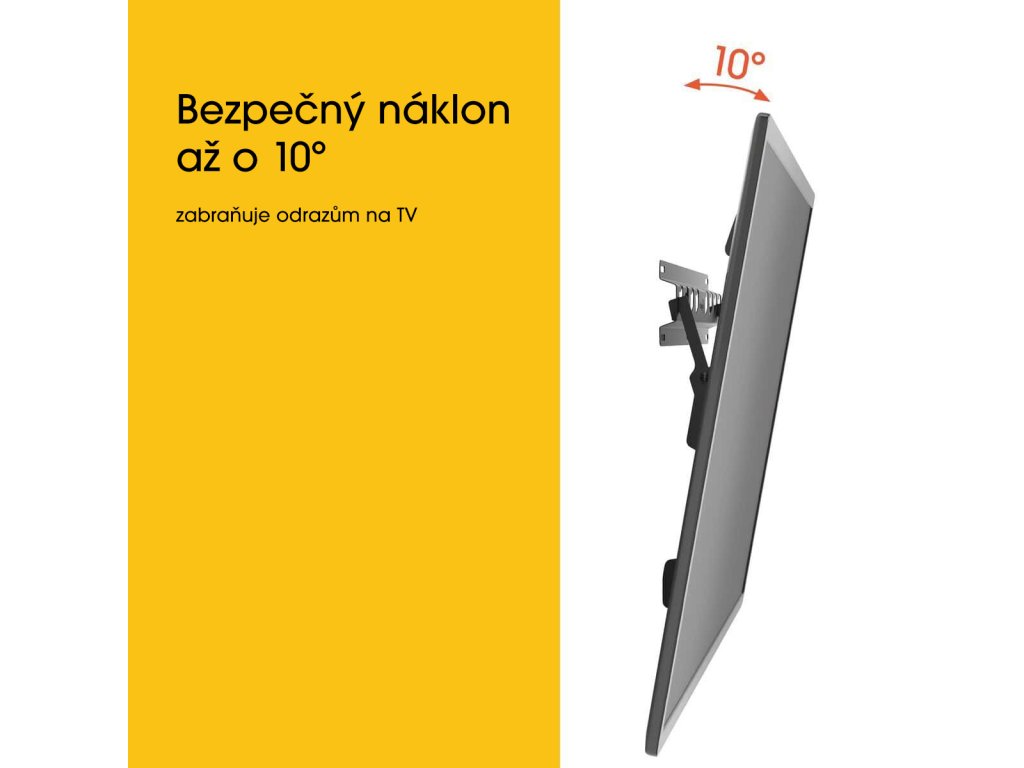 Spolehlivý držák na LCD s maximálním poměrem výkon/cena Hlavní vlastnosti: - doporučená úhlopříčka 40-80'' - nosnost 60 kg - nastavitelný náklon 0-10° - vzdálenost TV od stěny v poloze u stěny 35 mm - univerzální uchycení VESA 100x100 až 600x400 - náklon až 10 stupňů - jednoduchá montáž - veškerý potřebný montážní materiál je součástí baleníDodatočné parametre