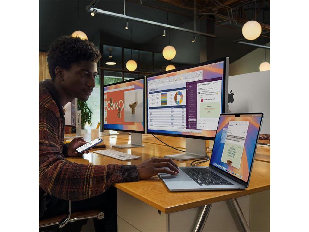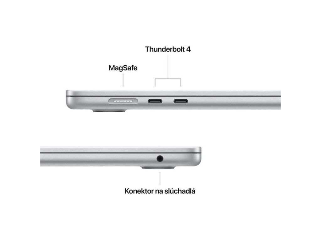 PRIPOJ SI VŠETKO – MacBook Air má dva porty Thunderbolt 4, nabíjací port MagSafe, konektor na slúchadlá, Wi-Fi 6E a Bluetooth 5.3. A podporuje až dva externé displeje.