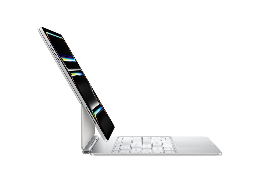 Magic Keyboard k 13palcovému iPadu Pro (M4) – český – bílý Magic Keyboard k iPadu Pro na pohodlné psaní a ovládání pomocí gest na trackpadu má nový elegantní design, hliníkovou dlaňovou opěrku a je krásně přenosný. Má řádek 14 funkčních kláves pro rychlý přístup k funkcím, jako je nastavování jasu displeje nebo ovládání hlasitosti, a USB-C konektor na průchozí nabíjení. Díky plovoucí konzolové konstrukci si hladce nastavíš ten správný pozorovací úhel. Nový, větší trackpad s haptickou odezvou je ideální na přesné úkony, jako je úprava tabulek nebo výběr textu. A podporuje ovládání iPadu známými, intuitivními Multi-Touch gesty. iPad Pro je v tomhle odolném krytu chráněný z obou stran, takže se s ním můžeš vydat kamkoli. Hlavní vlastnosti: *Je tenký a přenosný a díky konzolové konstrukci se dá hladce nastavit do takového úhlu, ve kterém se ti na obrazovku dívá nejlíp. *Větší vestavěný trackpad s haptickou odezvou. *Řádek 14 funkčních kláves pro rychlý přístup k praktickým funkcím, jako je nastavování jasu displeje nebo ovládání hlasitosti. *Pohodlné podsvícené klávesy a nůžkový mechanismus s 1mm zdvihem pro tiché psaní s příjemnou odezvou. *Navržený pro Multi-Touch gesta a kurzor v iPadOS. *USB-C konektor v odolném pantu z přesně zpracovaného hliníku. *V zavřeném stavu chrání iPad Pro z obou stran. Kompatibilita: *13palcový iPad Pro (M4)Dodatočné parametre