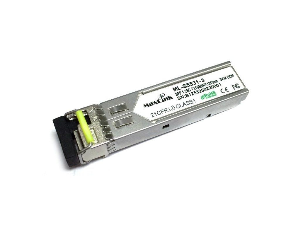 MaxLink 1.25G SFP optický modul, WDM (BiDi), SM, Tx 1550/Rx1310nm, 3km, 1x LC konektor, DDM ML-S5531-3
