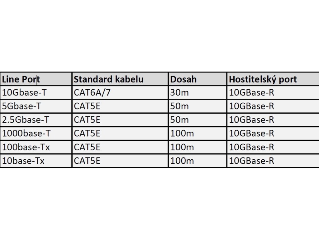 |Optika|Formát: SFP+ Pro typ kabelu: Metalický Přenosová rychlost: 1 Gbps, 2.5 Gbps, 5 Gbps, 10 Gbps Dosah [km]: 0,03 Typ přenosu: Metalický