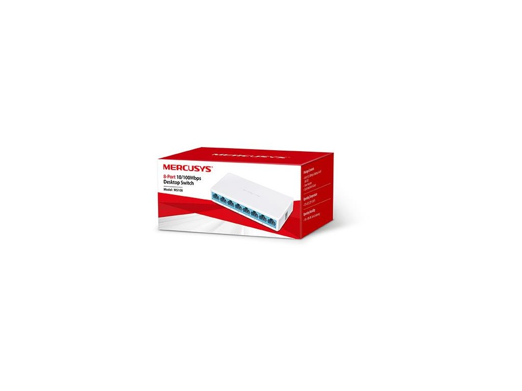 8-Port 10/100Mbps Desktop Switch, MS108, Osem portov RJ45 s automatickým vyjednávaním s rýchlosťou 10/100Mbps s podporou automatického MDI/MDIX, Jednoduchá sieťová rozširovanie siete, Kompaktný dizajn pre flexibilné usporiadanie, Nastavenie typu Plug and play, nie je potrebná žiadna konfigurácia