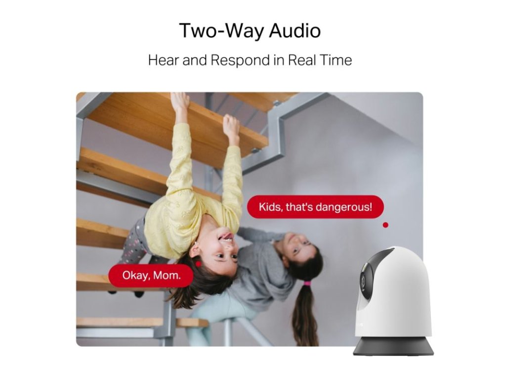 Obojsmerné audio - Počúvanie a komunikácia v reálnom čase cez zabudovaný mikrofón a reproduktor. Interakcia s rodinou a domácimi zvieratami kedykoľvek.