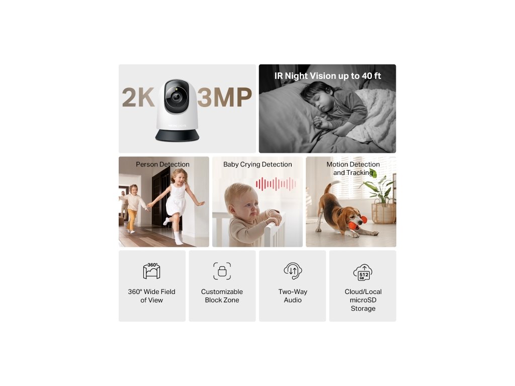 Vysoké rozlíšenie videa - Kamera poskytuje 2K 3MP vysoké rozlíšenie pre jasné a detailné zábery s rozlíšením až 2304 × 1296 pixelov.