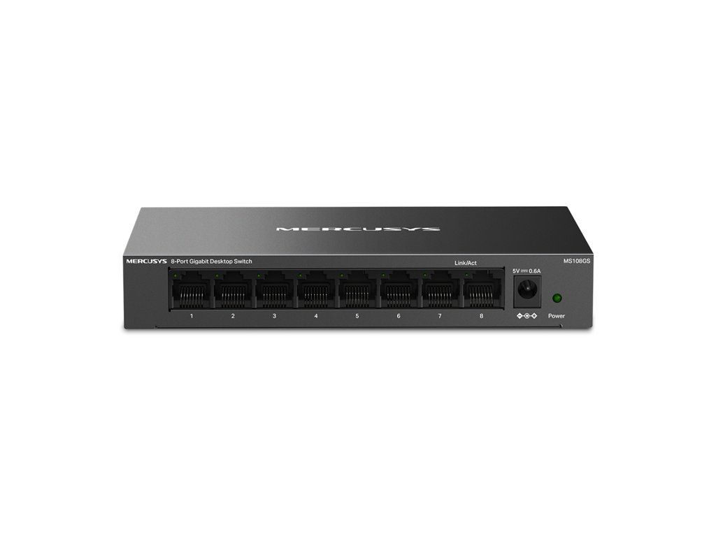 Mercusys MS108GS 8portový gigabitový stolní přepínač Kompaktní a spolehlivý gigabitový přepínač, který představuje ideální způsob, jak snadno rozšířit vaši kabelovou síť. S osmi vysokorychlostními porty je perfektním řešením pro připojení herních konzolí, chytrých televizorů, počítačů nebo tiskáren v domácnosti i malé kanceláři. Bezdrátová síť *Standard: IEEE 802.3, IEEE 802.3u, IEEE 802.3x, IEEE 802.3ab *Rychlost: 10/100/1000 Mb/s (Auto-Negotiation) *Zabezpečení: N/A (Transparentní přenos) *Vlastnosti: Podpora Auto-MDI/MDIX na všech portech (není potřeba křížený kabel) Výkon a kapacita *Počet portů: 8 *Kapacita přepínání: 16 Gb/s *Metoda přenosu: Store-and-Forward *Jumbo Frame: 9 KB *Technologie: Green Ethernet pro výraznou úsporu energie Porty a hardware *Ethernet porty: 8× 10/100/1000 Mb/s RJ45 porty *Napájení: 5V / 0,6A externí napájecí adaptér *Tlačítka: Žádná (Plug and Play zařízení) *LED: Indikace napájení a aktivity pro každý port Režimy provozu *Režim přepínače (Switch) *Plug and Play (bez nutnosti konfigurace) Zabezpečení *Zabezpečení: Fyzicky odolné plastové šasi *Ochrana: Spolehlivý provoz bez ventilátoru (zcela tichý chod) Software a správa *Správa: Unmanaged (neřiditelný) *Funkce: Řízení toku dat (Flow Control) pro stabilní přenos *Podpora protokolů: IPv4 / IPv6 Fyzické parametry *Rozměry (Š × H × V): 127 × 60,3 × 22 mm *Design: Ultra kompaktní stolní provedení s možností umístění na stůl Obsah balení *MS108GS: 1× 8portový gigabitový stolní přepínač, 1× napájecí adaptér, stručný návod Provozní podmínky *Provozní teplota: 0 °C až 40 °C *Vlhkost: 10 % až 90 % RH (nekondenzující) Odkaz na web výrobce: https://www.mercusys.com/cz/product/details/ms108gs/Dodatočné parametre