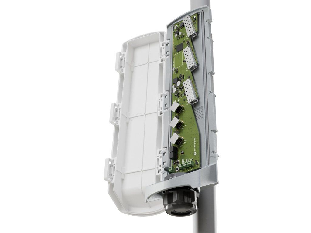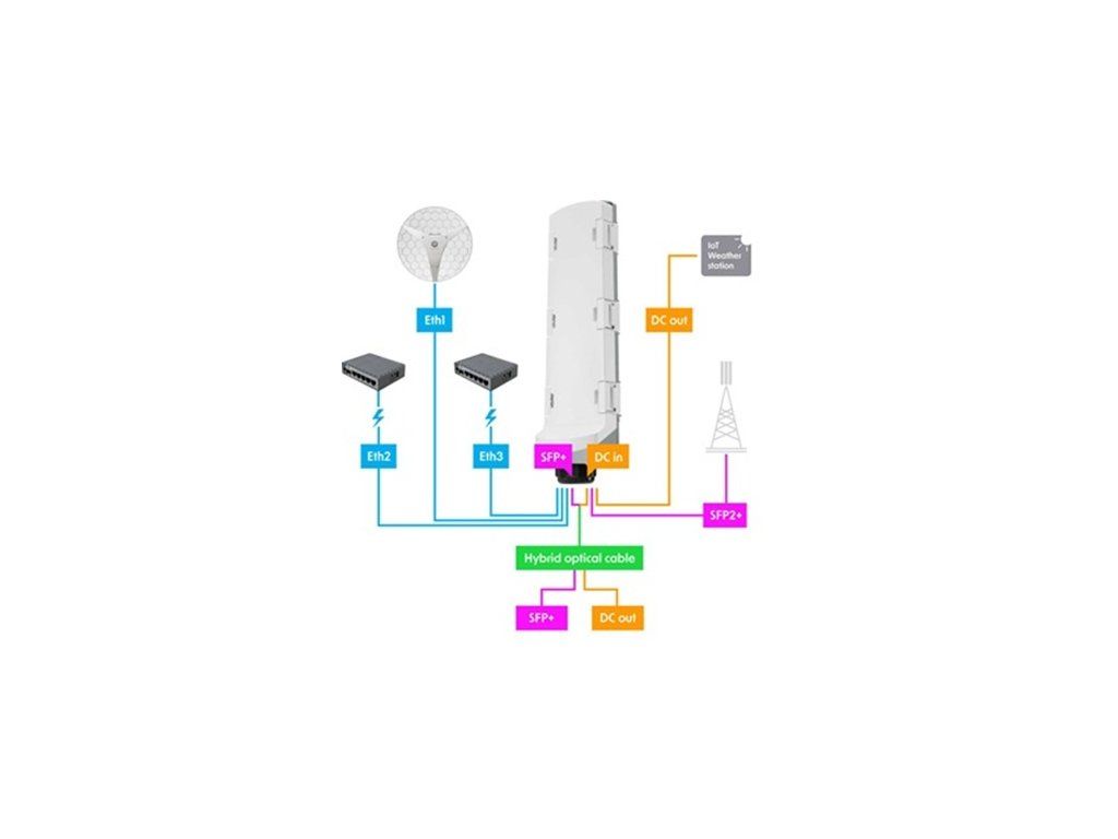 MikroTik venkovní PoE switch GPERx6 robustní venkovní switch pro přenos dat a napájení hybridním kabelem na velké vzdálenosti, který omezuje změť kabelů a zjednodušuje instalaci Zbavte se zbytečných kabelů – propojte napájení a optické kabely kamkoli – pomocí jediného hybridního kabelu, který kombinuje optická vlákna pro data a měděné vodiče pro napájení. Na druhém konci GPERx6 vše úhledně rozděluje: SFP+ porty pro vysokorychlostní uplinky dat, PoE výstupy pro napájení dalších switchů nebo přístupových bodů a DC výstupy pro IoT zařízení nebo specializovaný HW. Řešení pro náročné venkovní instalace, kde je potřeba rozdělit data a napájení z jednoho hybridního kabelu na více zařízení. Switch GPERx6 kombinuje 3 Gigabit Ethernet porty s PoE funkcionalitou, 3 vysokorychlostní 10G SFP+ porty pro optické spoje a 3 DC výstupy pro napájení IoT zařízení nebo specializovaných přístrojů. Ideální pro zabezpečení rozlehlých areálů, průmyslové parky, vzdálené CCTV věže, bezpečnostní systémy nebo solární instalace na vzdálených místech. *3 Gigabit Ethernet porty s PoE-in (port 1) a PoE-out (porty 2 a 3) až 57 V *3 10G SFP+ porty pro vysokorychlostní optické spoje na dlouhé vzdálenosti (1-2 km) *3 DC výstupy (DC1–DC3) s celkovým výkonem až 3,6 A pro IoT zařízení *odolné IP66 krytí - robustní konstrukce krytu odolá extrémním povětrnostním podmínkám včetně mrazu, horka, větru a deště *dvojí napájení přes DC jack (12–57 V) nebo PoE-in (42–57 V) s 802.3bt podporou *dedikovaný 10G switch čip 88E6193X testovaný v ISP zařízeních *operační systém SwOS pro jednoduchou konfiguraci a správu *maximální spotřeba 160 W (6 W bez připojených zařízení) Specifikace: *model switch čipu: 88E6193X *operační systém: SwOS *MTBF (mezidobý stav mezi poruchami): přibližně 200 000 hodin při 25°C *IP krytí: IP66 *monitor teploty CPU: ano Ethernet: *ethernetové porty 10/100/1000: 3 *počet 1G ethernetových portů s reverzním PoE (PoE-in): 1 *počet 1G ethernetových portů s PoE-out: 2 Optika: *SFP+ porty: 3 PoE výstup: *výstupní porty PoE: Ether2-Ether3 *PoE výstup: pasivní PoE až 57 V *omezení proudu pro nízkonapěťový PoE-Out: 1,2 A *omezení proudu pro vysokonapěťový PoE-Out: 0,625 A *max. celkový výstup: 2,4 A *celkový výstupní výkon (W): 150 Napájení: *PoE vstup: 802.3bt *počet stejnosměrných vstupů: 2 (DC konektor, PoE-IN) *počet DC výstupních portů: 3 (DC1-DC3, max total out 3,6 A) *vstupní napětí DC konektoru: 12-57 V *max. spotřeba energie (W): 160 *max. spotřeba energie bez zařízení(W): 6 *vstupní napájení PoE: 42-57 V *typ chlazení: pasivní (bez ventilátorů) Fyzické charakteristiky Provozní teplota (°C): -40 až +70 Barva: bílá Druh instalace: venkovní Možnosti montáže: na sloup, nástěnná Kompatibilita: https://help.mikrotik.com/docs/spaces/ROS/pages/220233794/MikroTik+wired+interface+compatibility Odkaz na stránku výrobce: https://mikrotik.com/product/gperx6 Obsah balení: *1x MikroTik GPERx6 switch *2x hadicová svorka *1x montážní sada K-93 * uživatelská příručka Upozornění: Výrobce MIKROTIK nevztahuje záruku na zařízení poškozená přepětím. Zařízení je třeba na vstupech adekvátně chránit proti indukovanému elektrostatickému přepětí či přepěťovým špičkám na silovém vedení. Při venkovních instalacích je třeba používat stíněnou kabeláž (FTP/SFTP), příslušné přepěťové ochrany (pokud nejsou integrovány) a provést korektní a efektivní uzemnění. Zařízení vždy provozujte s poslední výrobcem publikovanou verzí (výrobcem označenou ''Stable'') operačního systému RouterOS. Taková verze garantuje nejoptimálnější funčknost, obsahuje opravené chyby z verzí předchozích a výkonová vylepšení.Dodatočné parametre