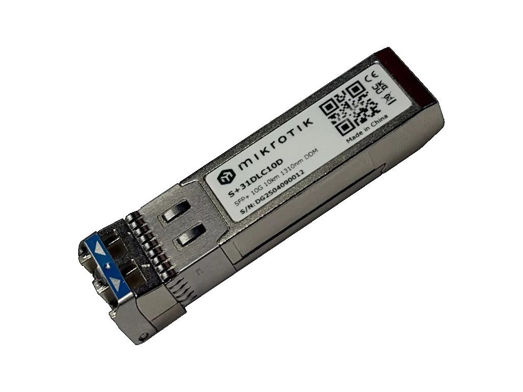 S+31DLC10D – 10G SFP+ modul pro single-mode spoje do 10 km S+31DLC10D je spolehlivý průmyslový 10G SFP+ modul určený pro dlouhé single-mode optické spoje až do vzdálenosti 10 km. Využívá standardní vlnovou délku 1310 nm a duální LC konektor pro plně duplexní provoz. Modul je ideální volbou pro páteřní spoje, kampusové sítě, průmyslové instalace i infrastrukturu poskytovatelů internetu (ISP). Digitální diagnostika DDM Integrovaná digitální diagnostika (DDM) umožňuje nepřetržité sledování důležitých provozních parametrů: * optický výkon vysílače a přijímače (TX / RX) * napájecí napětí * provozní teplotu modulu * proud laseru Tyto funkce pomáhají včas odhalit nestandardní chování nebo překročení nastavitelných limitů a usnadňují plánování údržby i budoucích upgradů na základě reálných dat. Hlavní vlastnosti a technické údaje * produktový kód: S+31DLC10D * typ modulu: SFP+ * přenosová rychlost: 10 Gbit/s * typ vlákna: single-mode * maximální dosah: až 10 km * vlnová délka: 1310 nm * konektor: Dual LC * plně duplexní provoz * podpora DDM diagnostiky * MTBF: cca 100 000 hodin při 25 °C Odkaz na web výrobce: https://mikrotik.com/product/s_31dlc10dDodatočné parametre
