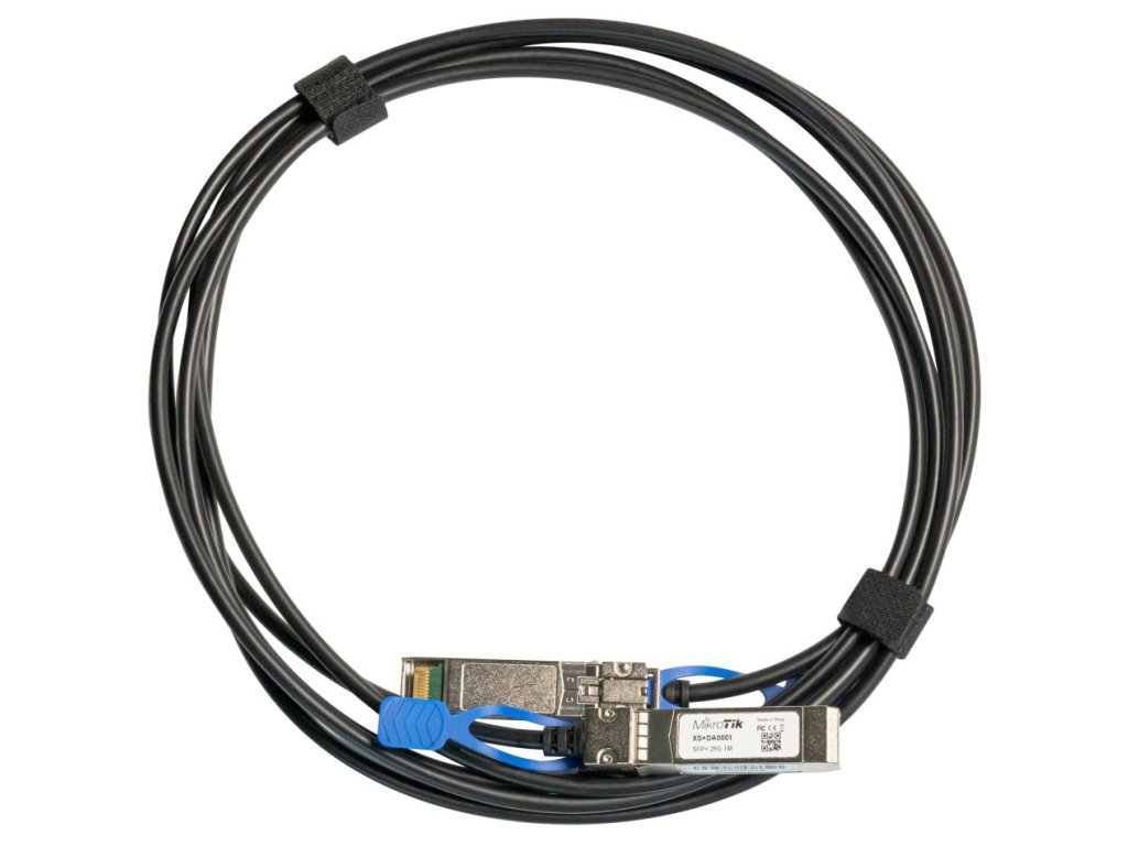 MikroTik XS+DA0001DAC (Direct Attach Cable) patch kabel od MikroTiku je určený pro 1/10/25Gbit propojení dvou zařízení s SFP/SFP+/SFP28 slotem. Délka 1 metr.