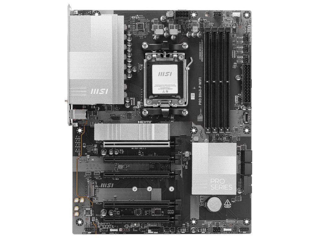 Základní deska MSI PRO B840-P WIFI v jednoduchém, ale funkčním designu, která je navržena pro stavbu PC systémů využívající moderní technologie nebo AI. Zvláště pro potřeby umělé inteligence podporuje deska hardware a engine například pro synchronizaci aplikací, optimalizaci výkonu sítě nebo automatickou úpravu výkonu ventilátorů. Základní deska MSI PRO B840-P WIFI podporuje procesory AMD Ryzen série 7000, 8000 a 9000 a nejnovější moduly operační paměti typu DDR5, pro kterou jsou k dispozici 4 volné sloty s maximální kapacitou 256 GB. Díky tomu je zajištěn vysoký výkon a stabilita i při extrémně náročných výpočetních procesech.