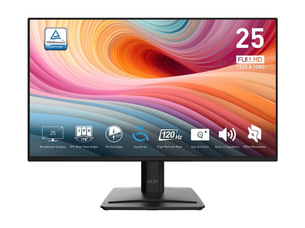 Nejlepší monitor domácí kanceláře s elegantním designem. *PerfectEdge *TÜV certified display *MSI EyesErgo/ Anti-Flicker *HDR Ready *KENSINGTON LOCK *Adaptive-Sync Typ obrazovky: IPS Úhlopříčka [palce]: 24.5'' Rozlišení: 1920 x 1080 (FHD) Rozteč bodu [mm]: 0.2832 Obnovovací frekvence [Hz]: 120 Hz Poměr stran: 16:9 Povrch displeje: Anti-glare Jas [cd/m2]: 300 Kontrast: 1500:1 Odezva [ms]: 1ms (MPRT) / 4ms (GTG) Pozorovací úhly (Horizontál/Vertikál): 178°(H) / 178°(V) Počet barev: 16.7 M Reproduktory: 2x 2W Konektory: VIDEO PORTS: *1x HDMI™ 1.4 (FHD@120Hz) *1x DisplayPort (1.2a) AUDIO PORTS: * 1x Headphone-out Napájení: Internal Power Board, 100~240V, 50~60Hz Montáž na zeď: 100 x 100 mm Naklápění monitoru: -5° ~ 20° Barva: Black Rozměry (ŠxVxH mm): 558 x 416.5 x 188 mm Hmotnost [kg]: 3.2 kg Záruka: 24 měs.Dodatočné parametre