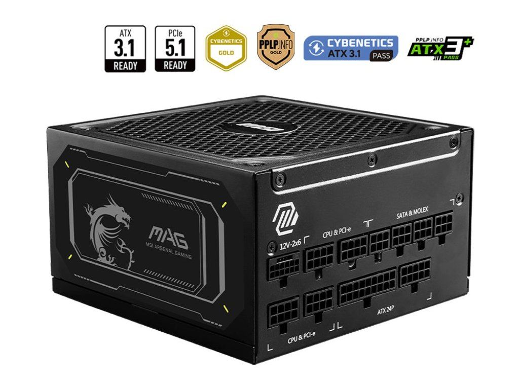 MSI zdroj MAG A1000GL PCIE5 II/ 1000W/ ATX3.1/ akt. PFC/ 7 let celk. záruka/ 135mm fan/ modulární kabeláž/ 80PLUS Gold 306-7ZP9D11-CE0