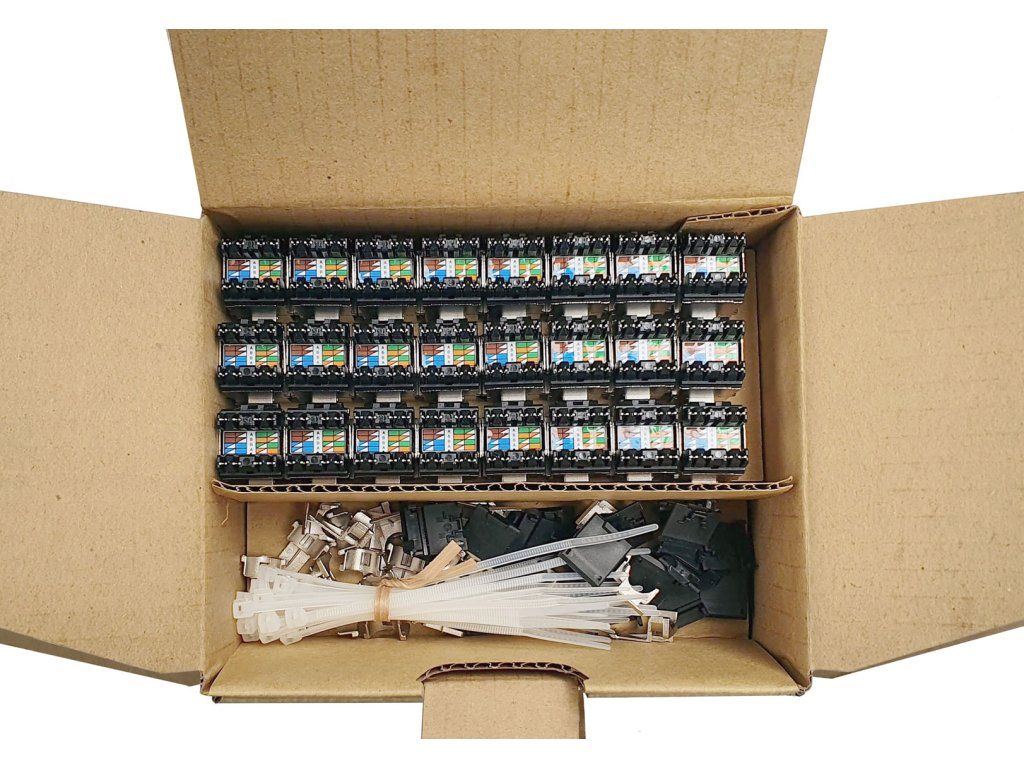 V tomto novém multipack balení jsou rychlozařezávací keystony Solarix k dispozici po 24 kusech, a to v recyklovatelném kartónovém boxu a bez plastových sáčků. Tento způsob balení je tedy mnohem šetrnější k životnímu prostředí (tj. místo v plastových obalech je 24 keystonů zabaleno v jednom recyklovatelném papírovém boxu) a rovněž toto balení umožní rychlejší dostupnost keystonů při instalaci (tj. není potřeba keystony vybalovat každý zvlášť). Keystony produktové řady Solarix – kategorie 5E s označením SXKJ-5E-STP-BK-NA jsou keystony, u kterých je důraz kladen především na rychlost a jednoduchost zařezání. Tyto keystony lze zařezat speciálními kleštěmi, které významně zkracují čas instalace. Keystony jsou dostupné ve stíněném i nestíněném provedení a bez problémů splňují požadavky definované v mezinárodních standardech ANSI/TIA 568, ISO/IEC 11801 a EN 50173 pro kategorii 5E a třídu vedení Class D, včetně všech nejnovějších dodatků. Standardní barva nestíněných keystonů je černá, u stíněné verze je tělo modulu opatřeno stříbrnou kovovou částí. Kleště s označením SXKJ-NA-BU je nutné dokoupit zvlášť a lze je použít pouze na tento typ keystonů (tj. SXKJ-xx-yyy-BK-NA). Stejně jako všechny komponenty v produktové skupině Solarix – kategorie 5E jsou i tyto rychlozařezávací keystony vyrobeny tak, aby poskytovaly maximální životnost, vynikající výkon, spolehlivost a především jednoduchou instalaci. Díky svým kompaktním rozměrům jsou tyto rychlozařezávací keystony kompatibilní s modulárními zásuvkami většiny výrobců (např. ABB, Schneider, Legrand, Moeller, Hager, Obzor atd.). Tuto kompatibilitu si můžete ověřit v naší tabulce kompatibility keystonů Solarix. Technické parametry Kategorie: CAT5E Podporované protokoly: 2.5G/5GBASE-T a nižší Stínění: ano Min. životnost portu: 1 000 zapojení/odpojení Krytí kontaktů: 50 µ zlata a 100 µ niklu Svorkovnice: rychlozařezávací Velikost a typ vodiče: AWG 26 - 22, drát Materiál nekovových částí: FR plast podle UL94-0 Barva: černá (vnitřní část), stříbrná (kovové tělo) Skladovací teplota: -40 až 70 °C Provozní teplota: -10 až 60 °C Max. provozní vlhkost: 93 % Balení: 1 ks, plastový sáček Rozměry balení (výška x šířka x hloubka): 60 mm x 148 mm x 120 mm Přepravní balení: 576 ks (tj. 24 balení po 24 ks), kartónový box Rozměry přepravního balení (výška x šířka x hloubka): 270 mm x 370 mm x 320 mmDodatočné parametre