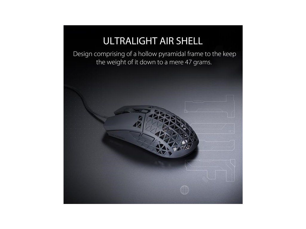 - Odolná a ultraľahká konštrukcia Air Shell s hmotnosťou 47 gramov