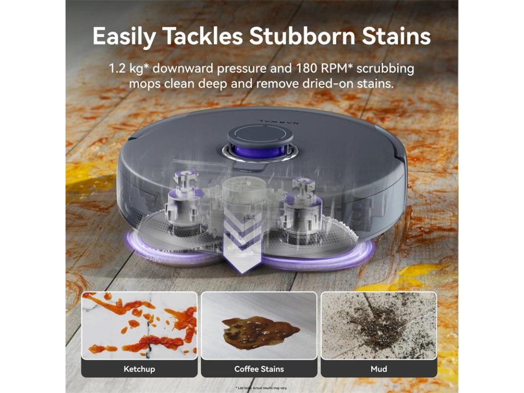 Dvojité mopy napodobňujú ručné čistenie a tlak smerom nadol, aby odstránili aj tie najodolnejšie škvrny, vrátane 72 hodín starého kečupu, kávy a džemu.