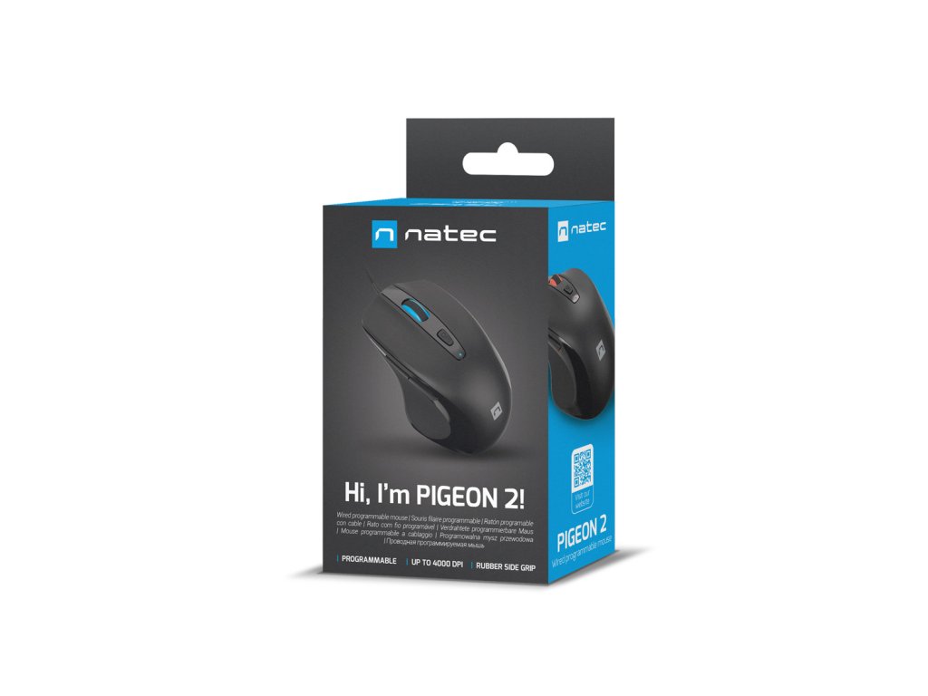 Natec optická myš PIGEON 2/4 000 DPI/Kancelárska/Optická/4 000 DPI/Drôtová USB/Čierna NMY-2047