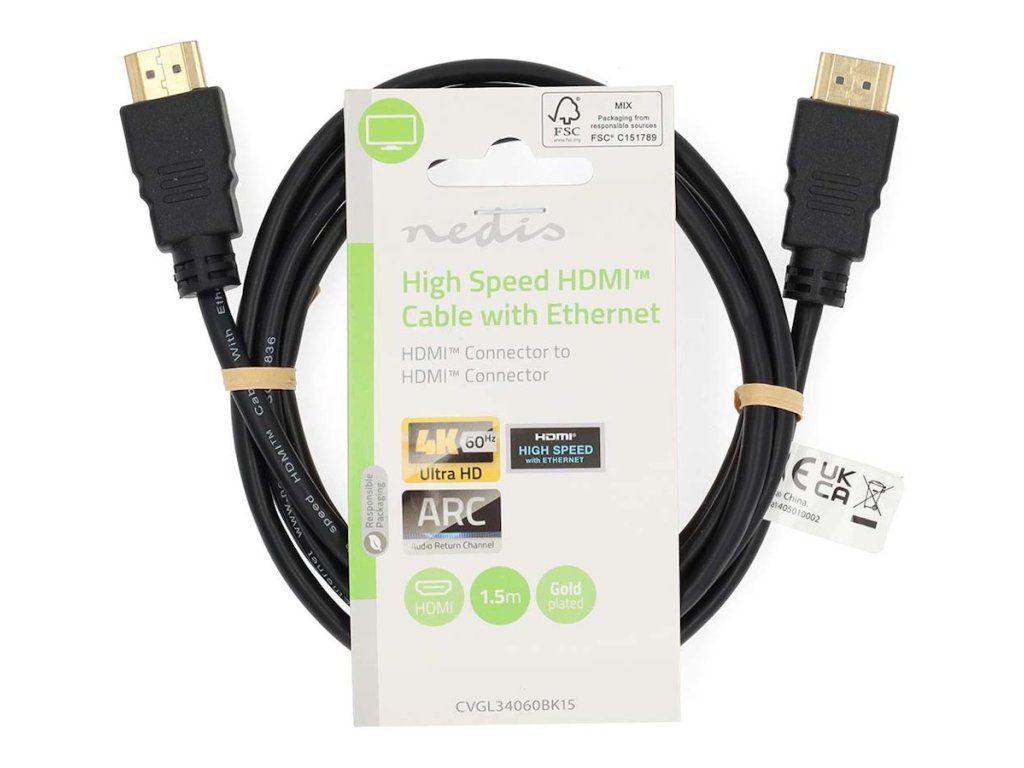 Nedis HDMI 2.0 kabel s Ethernetem 1,5 mHigh Speed HDMI 2.0 kabel s Ethernetem a zlacenými konektory je vhodný k propojení jednotlivých zařízení. Podporuje přenos videa v rozlišení 4K při 60 Hz a funkce jako je ARC (Audio Return Channel), HDCP nebo 3D obsah ve Full HD.