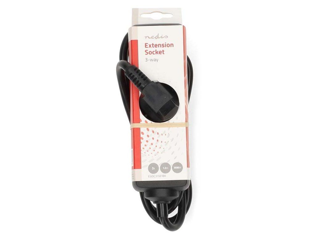 Nedis ESOC315E1BK; Tato prodlužovací zásuvka je vhodná k rozdělení zásuvky do tří napájecích bodů. Je vybavena 1,5 m dlouhým kabelem k napájení elektrických zařízení kdekoli doma nebo v kanceláři. Díky kontaktnímu úhlu 45° je tato napájecí lišta vhodn...