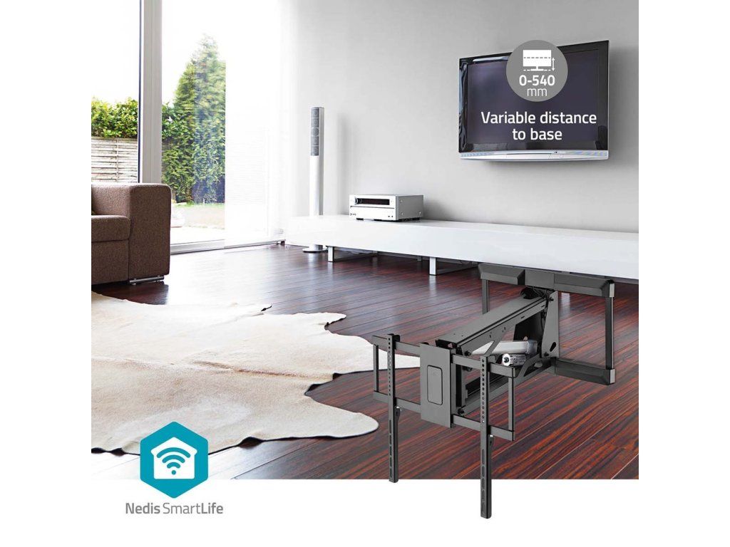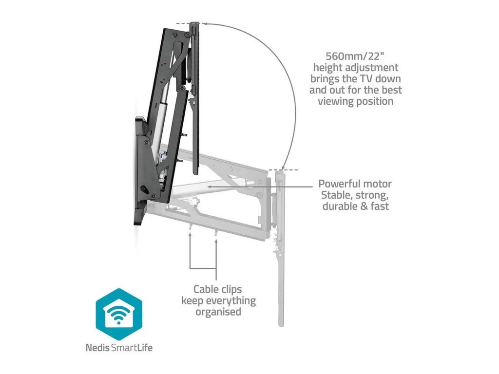 Motorizovaný držák Nedis TVWM5880BK pro pohodlné sledování TV. Disponuje motorizovaným ramenem, které usnadní nastavení obrazovky do požadované polohy. Televizor lze posouvat dopředu i dozadu, abyste docílili ideální vzdálenosti. Součástí balení je dálkový ovladač, s jehož pomocí lze rameno polohovat podle vašich požadavků. Potěší také podpora mobilní aplikace Nedis SmartLife, takže po připojení pomocí Wi-Fi můžete držák nastavit také přes smartphone.