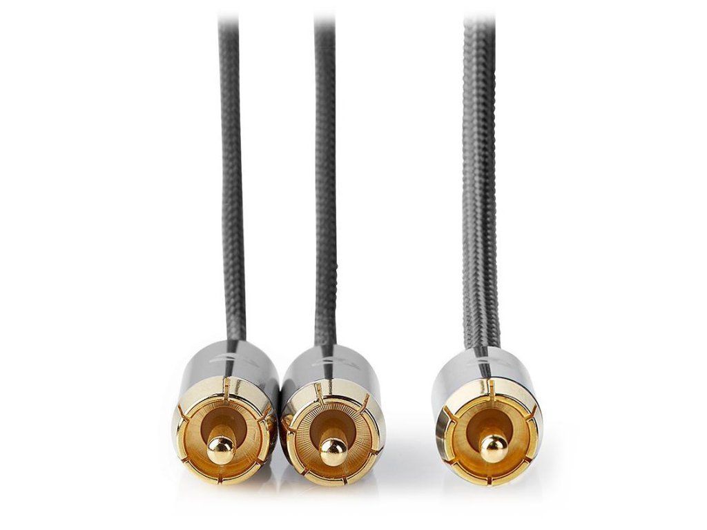 Nedis PROFIGOLD RCA na 2× RCA 3 m šedý; Vysoce kvalitní audio kabel je ideálním řešením pro připojení subwooferu s 2× RCA vstupem k výstupu PRE/subwooferu na zesilovači nebo přijímači. Opletený kabel zaručuje dlouhodobou spolehlivost a ochranu proti ú...