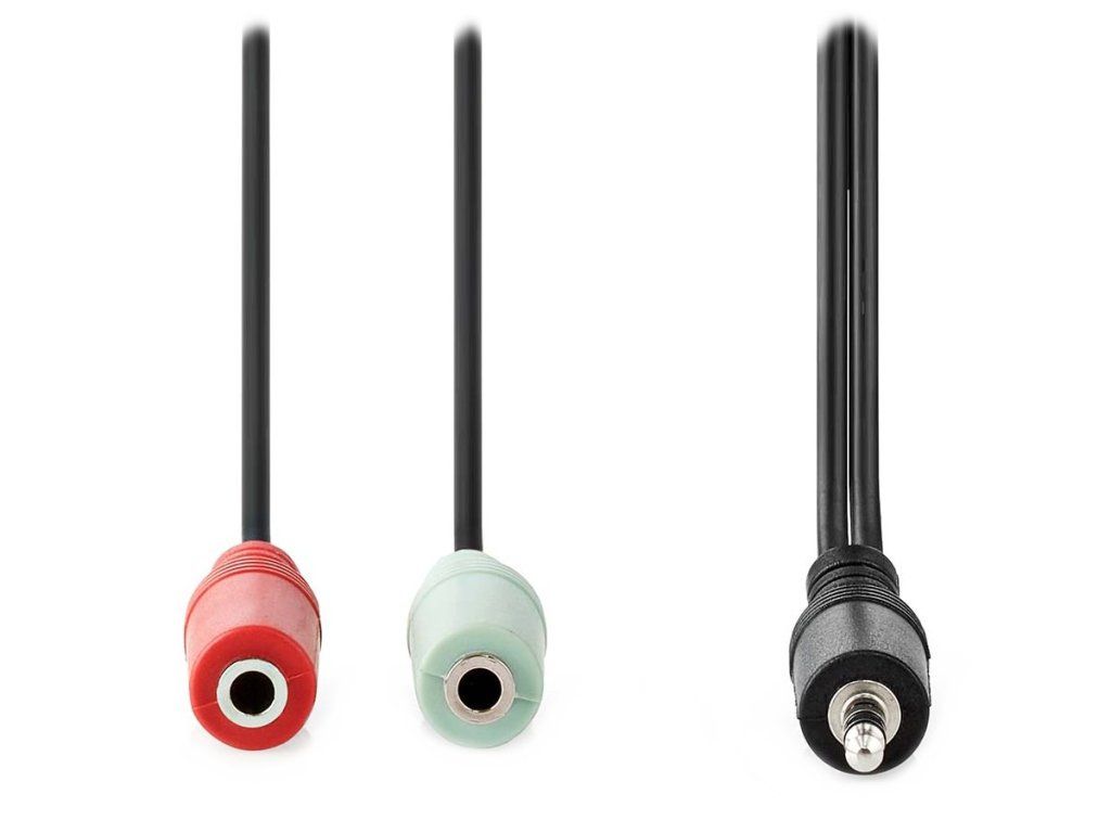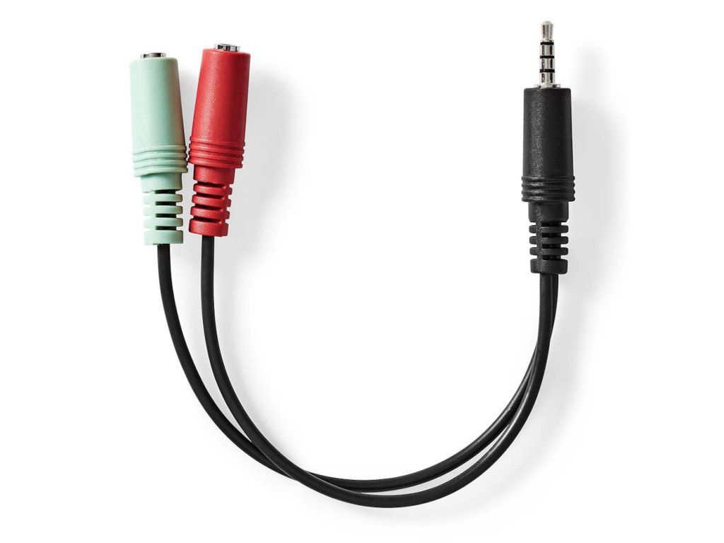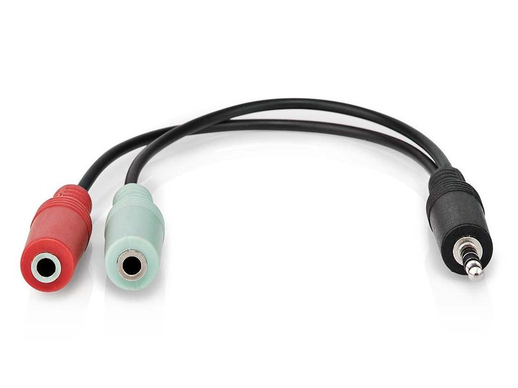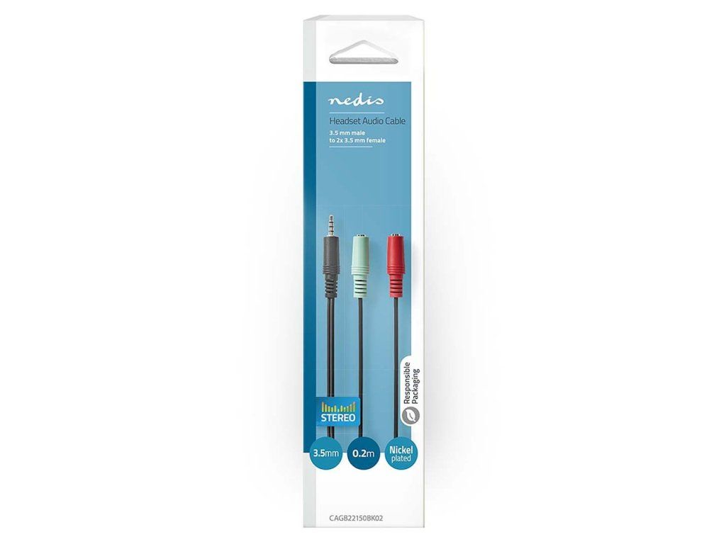 Nedis CAGB22150BK02; Tento Nedis rozbočovací kabel je skvělým řešením pro připojení sluchátek s oddělenými konektory pro audio a mikrofon do moderních notebooků nebo počítačů s jediným audio portem. ZÁKLADNÍ SPECIFIKACE; Konektor 1: 3,5 mm jack (M); K...
